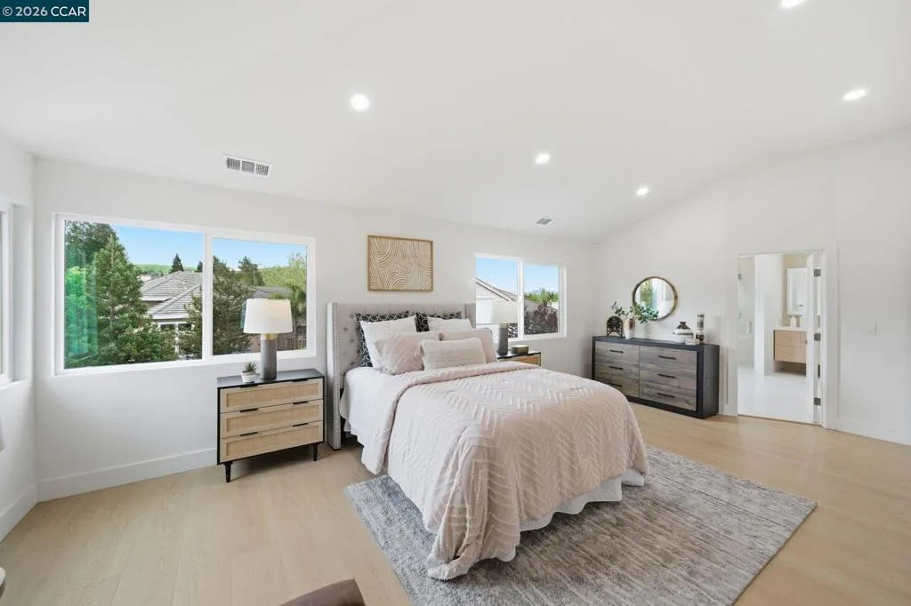 Welcome to 509 Zenith Ridge, a fully remodeled Tassajara Ranch home offering a true “new construction feel” with all upgrades completed with permits. This light-filled Danville residence features soaring ceilings, 4 bedrooms, 3 full baths, and approx. 2,856 sq ft of flexible living. A main level room offers ideal use as a private dining room, office, or 5th bedroom with a full bath nearby, perfect for guests or multi-gen living. The kitchen impresses with a 48” Thermador range and hood, stainless steel appliances, wine fridge, microwave drawer, French door refrigerator, walk-in pantry, oversized sink, and waterfall island with seating and prep space. A grand entry with spiral staircase and designer chandelier creates immediate impact, while new recessed lighting enhances the bright, modern feel. The primary suite offers a spa-like retreat with slipper tub, oversized dual-head shower, lighted double vanity, and an oversized walk-in closet. Extra upgrades include new flooring, windows, doors and rear slider, new dual-zone HVAC, and fresh paint. Enjoy a landscaped front rear yard, new concrete patio, 3-car garage, plus Tassajara Ranch pool and clubhouse. Ideally located near top-rated schools, parks, Blackhawk Plaza, and Downtown Danville. Homes like this rarely come to market.