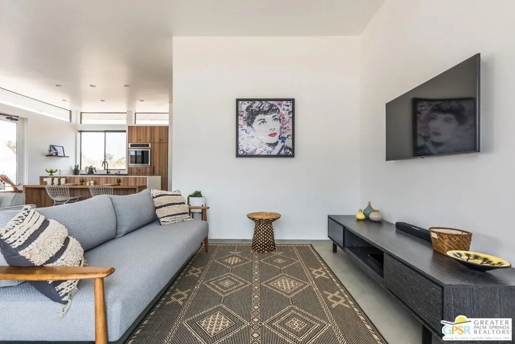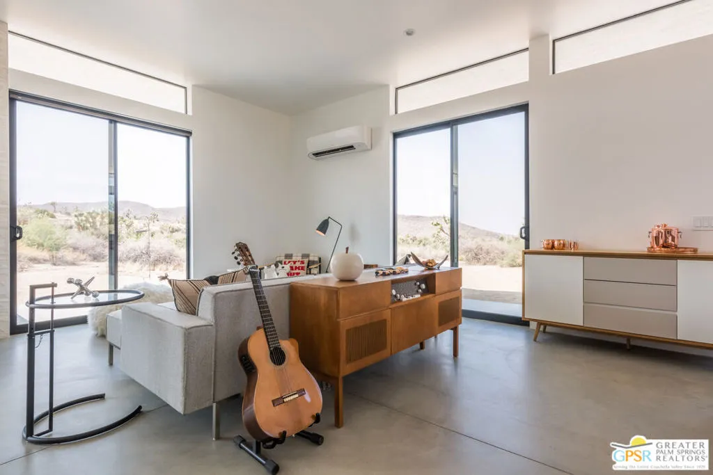 Amazing opportunity--one of a kind, one owner custom built by architect Coieffi as a High Desert retreat sited on nearly 2.5 acres of stunning and natural desert landscape featuring abundant flora and mesmerizing Mt. San Gorgonio views. Property is a proven and successful cash generating vacation rental with pride of ownership abounding. Stunning Mid-Century Modern influenced finishes and embellishments, 5-star hotel quality baths and an abundance of natural light. Outdoors you will enjoy the covered entertainment pavilion with full kitchen and dining space for family & friends and the included hot tub for nights of stargazing. The fully outfitted chef's kitchen offers refined cabinetry, quartz countertops and upscale appliances. High ceilings, clerestory windows and views from every room. House your guests in the included 1968 Vintage solar powered Airstream which is connected to septic, propane and water. This low-maintenance property is a perfect full time, second home or investment property. The very private setting is easily accessible to Palm Springs and Los Angeles. A magnificent and rare escape. Some furnishings and art available outside of escrow.