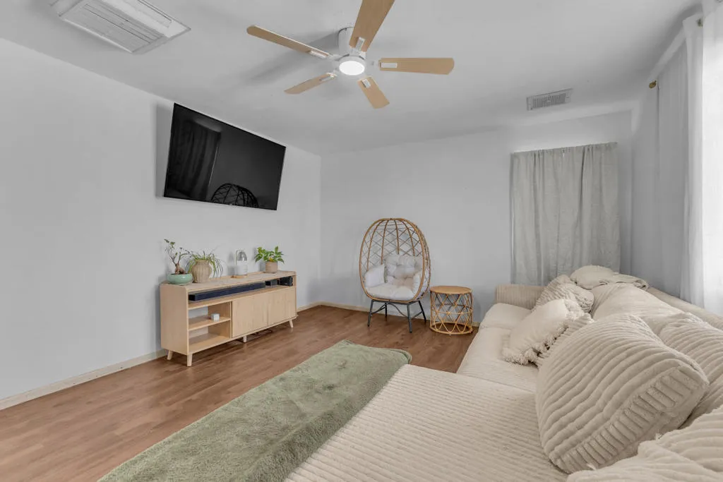 Charming 2-bedroom, 1-bath home featuring a versatile bonus room that can easily be used as a 3rd bedroom, home office, or guest space--perfect for added flexibility. This well-maintained property offers a comfortable layout with plenty of potential to make it your own. Ideally located just minutes from Joshua Tree National Park, you'll enjoy easy access to world-class hiking, stunning desert landscapes, and endless outdoor adventure. Whether you're searching for a primary residence, vacation home, or investment opportunity, this property combines convenience, functionality, and a prime location in 29 Palms.