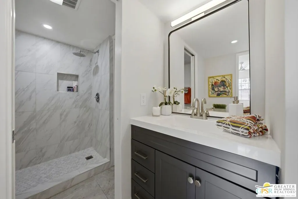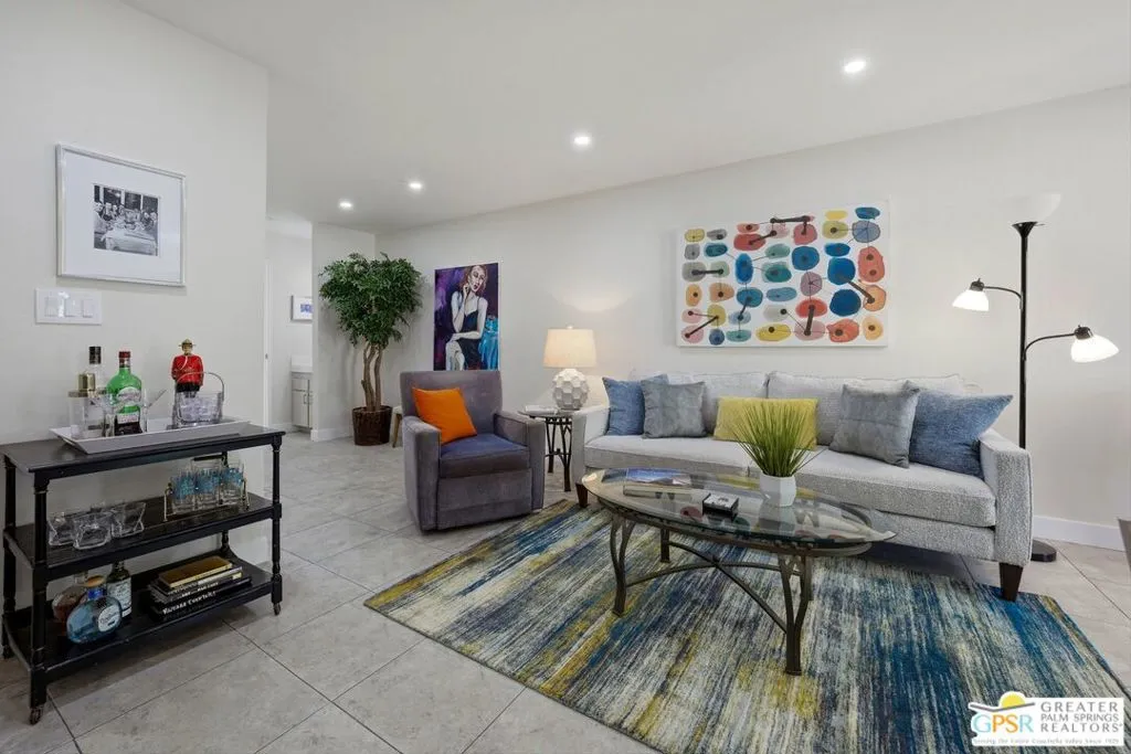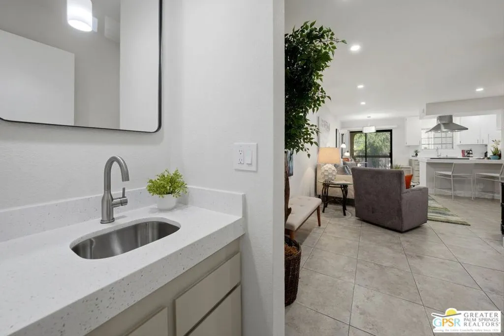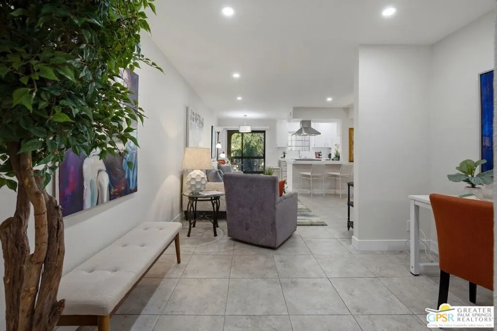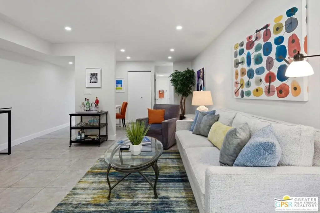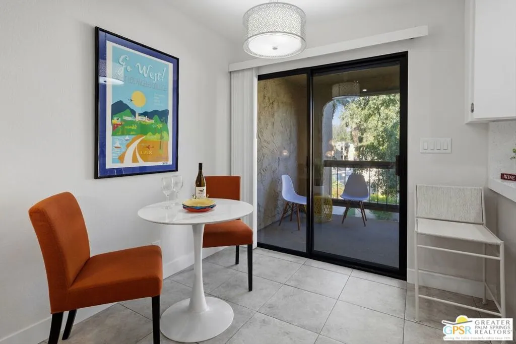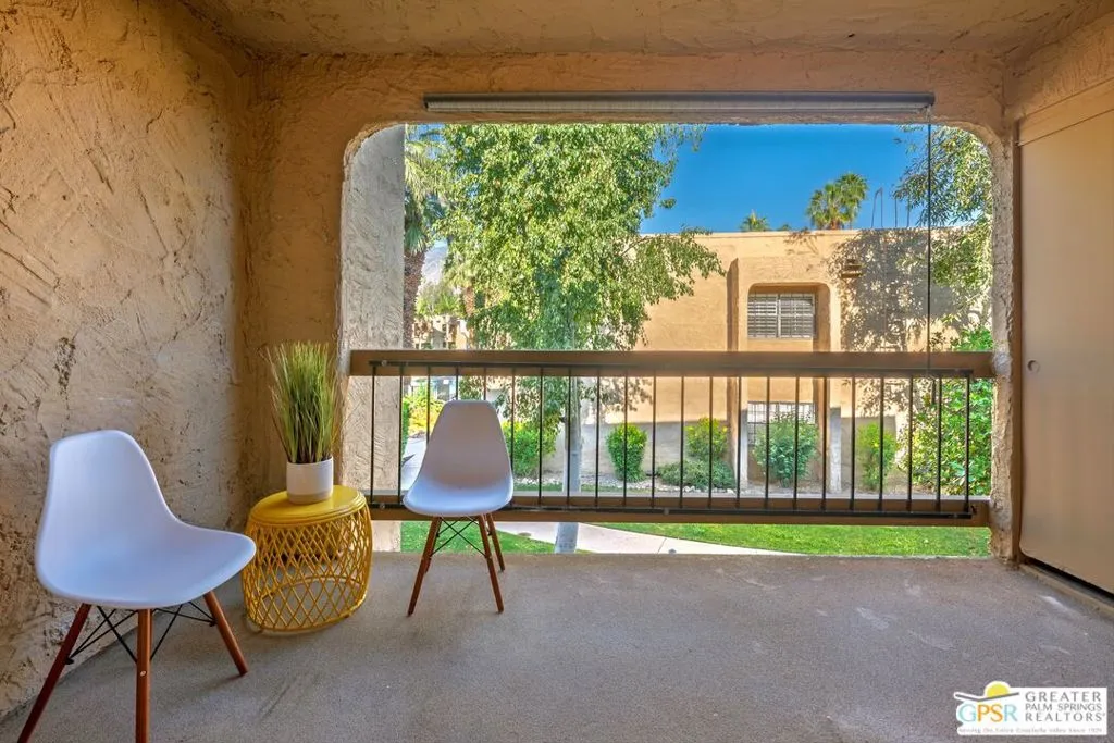 Welcome to Palm Springs Golf & Tennis Club, offering exceptional lifestyle appeal and strong rental potential in sought-after South Palm Springs. This beautifully positioned 1-bedroom plus bonus area, 2-bath residence spans approximately 705 square feet and features single-level living on the second floor, along with the convenience of in-unit balcony laundry. Ideally situated with tranquil pool views, the home is just steps from the community's pools, spas, and tennis courts an ideal setting for both seasonal renters and full-time residents. Recent remodel enhancements include fresh interior paint, new window coverings, both bathrooms remodeled, and a thoughtfully refreshed kitchen showcasing quartz countertops and newer KitchenAid appliances. A versatile bonus area, functions seamlessly as a guest space, media lounge, or remote workspace adding valuable flexibility and increased rental appeal. Residents enjoy access to multiple community amenities, including three pools, four spas, and four tennis courts within a well-maintained community of approximately 205 units. HOA dues of $529 per month provide excellent value, typically covering water, sewer, trash, cable TV, internet, and exterior maintenance ensuring ease of ownership and predictable expenses. Located adjacent to Tahquitz Creek Golf Resort, featuring two championship 18-hole courses, this property presents an outstanding opportunity as a seasonal rental investment, long-term hold, or personal desert retreat. Trader Joes, Target, shopping, restaurants and services are located close to property. Located just minutes to downtown Palm Springs.