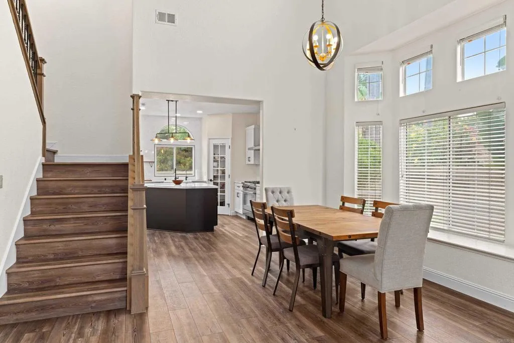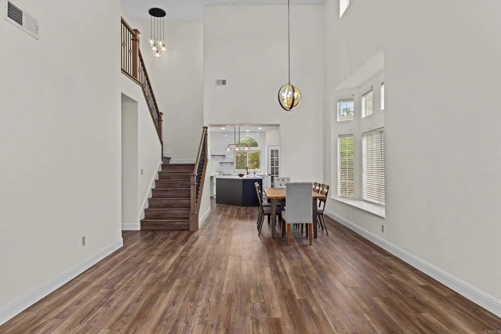 Don’t miss this beautifully upgraded 5-bedroom, 3-bath home in the highly sought-after Alga Hills community, offering space, style, and a prime North County location. Thoughtful floor plan includes a main-level bedroom and full bath—ideal for guests or multi-generational living. Light-filled interior with soaring ceilings and luxury vinyl plank flooring throughout much of the home. Remodeled kitchen features quartz countertops, a large center island with eat-at bar, high-end appliances, abundant cabinetry, and a pass-through window to the backyard—perfect for entertaining. The owner has completed many upgrades within the last five years, enhancing both style and functionality. Inviting family room with fireplace and custom tiled accent wall. Spacious primary bedroom features a large walk-in closet. Front bedroom includes an extra space created from converted attic area—ideal for play area or storage. Enjoy a large, private wraparound yard with patio, lawn, shed, and lush landscaping. Additional highlights include owned solar, A/C, low HOA, and no Mello-Roos. Community amenities include pool and spa. Conveniently located near top-rated schools, parks, shopping, and just minutes to the beach. Room dimensions and sizes are approximate. Buyer to verify all MLS data and information before the close of escrow. Seller to select services.