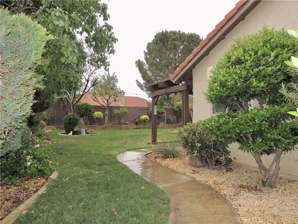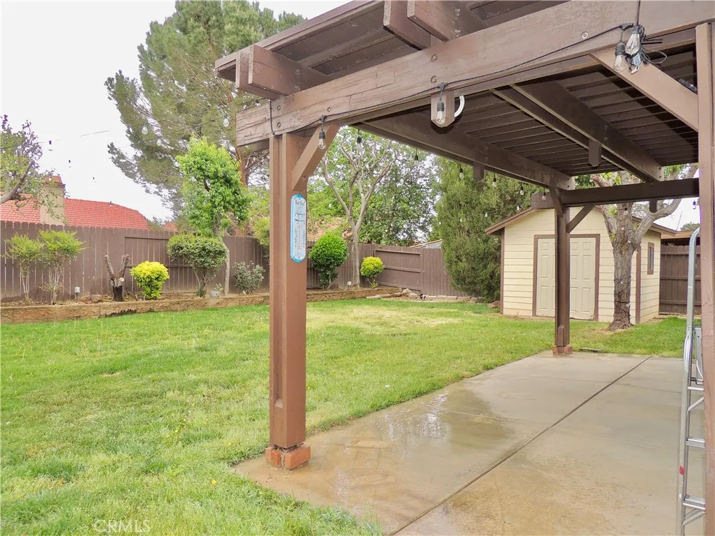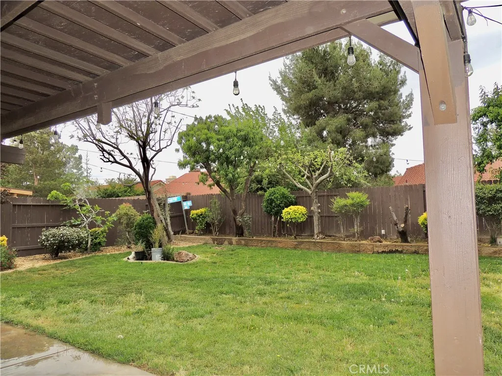 Beautifully updated throughout, this captivating Lancaster residence awaits you to move in and relax! Past the front lawn, be greeted by a bright interior finished in crisp white tones, high ceilings, and recently installed wood-style flooring. An inviting brick fireplace lends warmth to the living area, while a brand-new modern kitchen and chandelier sets the mood in the dining corner. Whip up culinary delights in the galley-style kitchen with its host of appliances, handsome cabinetry, an upgraded sink, newer beveled quartz countertops, and a cheerful breakfast nook. Through large glass sliders, take your gatherings out to the covered patio and well-sized backyard where you can enjoy BBQs and hold leisurely activities in seclusion, surrounded by various fruit trees like apple, fig, peach, and cherry. Additional inclusions are a versatile detached storage shed, a dog run, and an attached 2-car garage. Stove, refrigerator, washer and dryer included. Gardner also included.