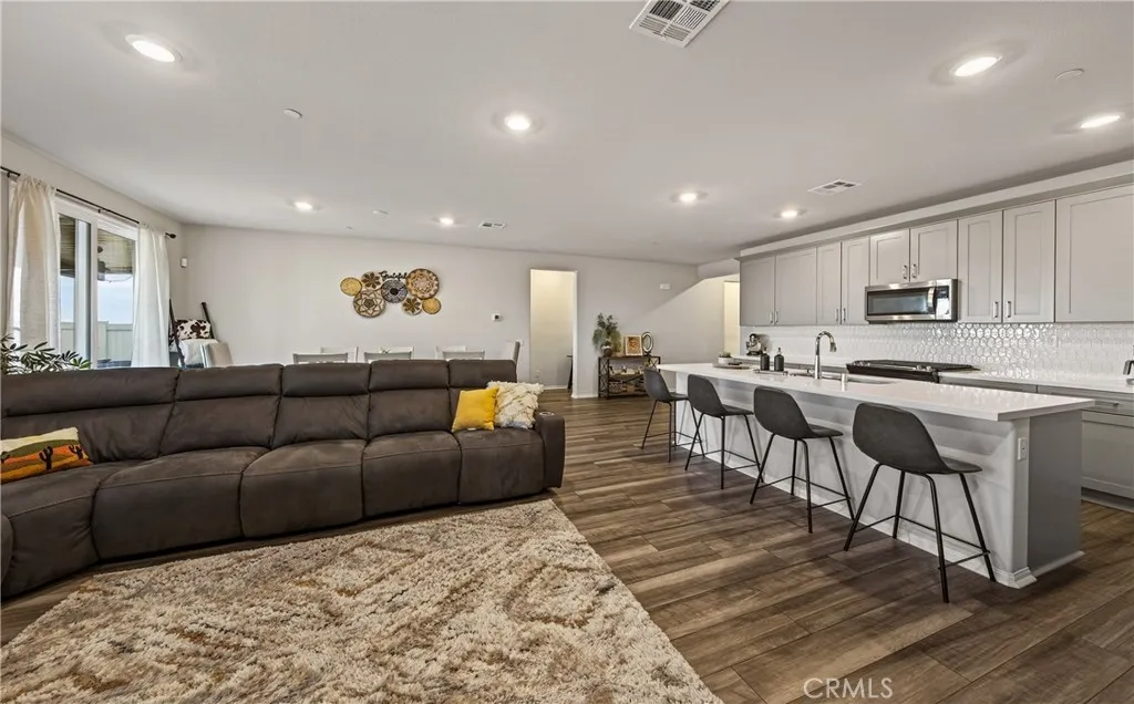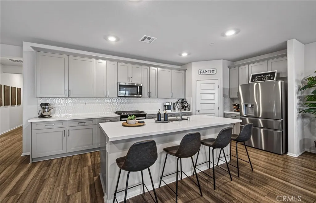 Welcome to this beautifully upgraded, like-new single-story home, thoughtfully designed with both style and functionality in mind. Built just a few years ago, this four-bedroom, three-bathroom residence showcases a modern open floor plan ideal for everyday living and entertaining. The interior features upgraded flooring throughout, stunning quartz countertops, a custom backsplash, and recessed lighting that enhances the home’s bright and inviting ambiance. The spacious kitchen is centered around a large island, perfect for gathering and hosting. Retreat to generously sized bedrooms, including walk-in closets and customized closet systems that offer both luxury and organization. Every detail has been carefully considered to maximize comfort and convenience. Step outside to a low-maintenance backyard complete with artificial turf and a covered patio perfect for relaxing or entertaining year-round. Additional highlights include paid solar for energy efficiency and long-term savings. This move-in-ready home offers the perfect blend of modern upgrades, thoughtful design, and effortless living.