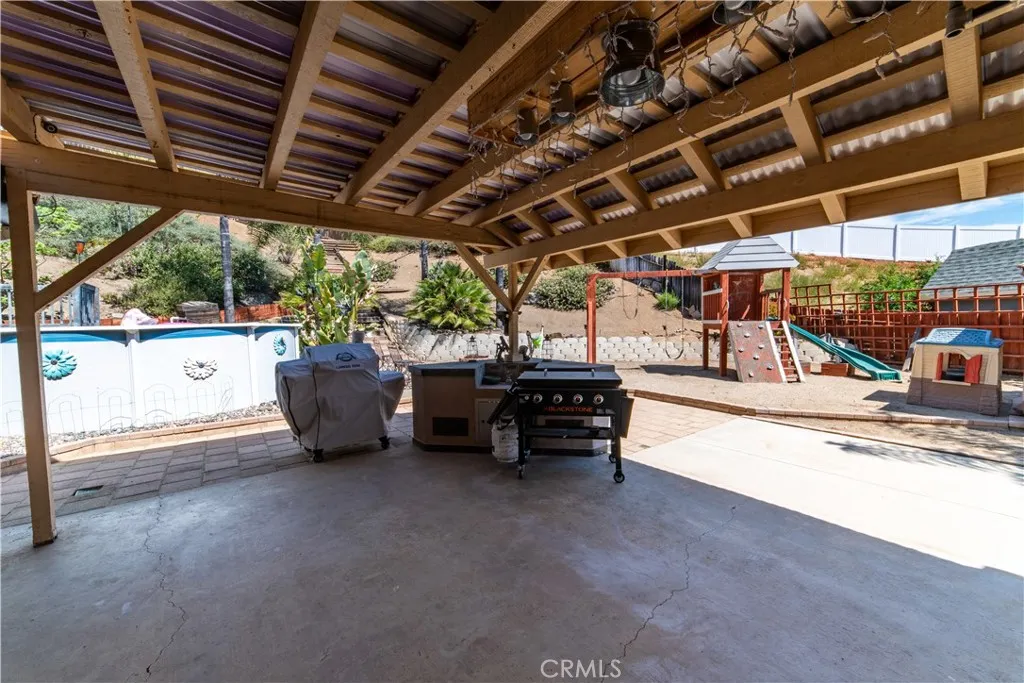 Well maintained pool home with upgrades and custom features! Sprawling view of Temecula Valley and Palomar Mountains! Great Family Home! Above ground pool with custom deck the backyard has many amenities including: a playground, a bike parking lot, built in firepit, upper mountain platform, workshop and RV/boat parking access on one side, and garden boxes and shed on the other. Vaulted ceilings and crown molding throughout the house. Theres wood flooring, built-in shelving, gas fireplace built-in mantel. red tiled kitchen, with granite counters, stone wall facia, custom cabinet black hardwood flooring, His and her closets, and built-in shelving. newly painted master bathroom with an extra large tub with shower, custom barn door bifold closet, Smart energy efficient thermostat in hallway. Theres a laundry room with hook ups that leads to a garage that is workshop ready.