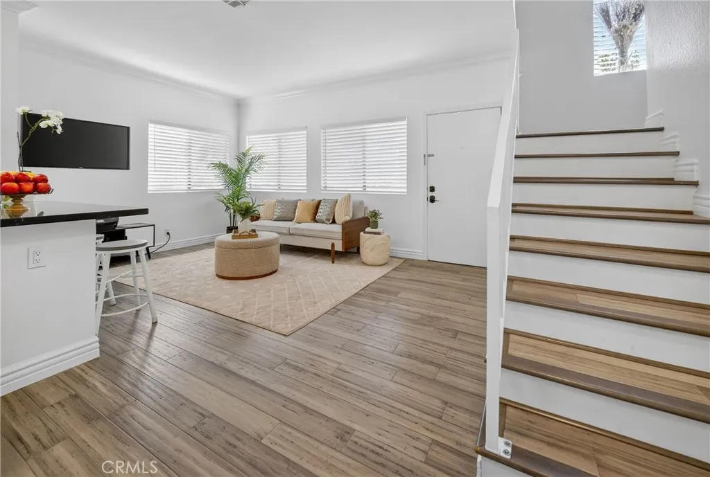 Welcome to Casa De Oaks, a beautifully maintained home in a prime location in the heart of Thousand Oaks. This inviting residence offers the perfect blend of comfort, style, and convenience, ideal for enjoying the best of Southern California living. Step inside to a light filled interior with an open and functional floor plan designed for both everyday living and entertaining. The completely reimagined kitchen features a new layout with an island, quartz countertops, soft closing drawers, and sleek black stainless steel Samsung appliances, creating a modern and highly functional centerpiece of the home. Throughout the condo, you will find 3/8 engineered bamboo flooring paired with a half inch cork underlayment for enhanced sound insulation, offering a quieter and more peaceful living experience. Additional upgrades include new six panel doors, elegant baseboards, crown molding downstairs, and all new stainless steel light fixtures, adding a cohesive and refined finish. The spacious primary bedroom offers a private balcony with serene mountain views, while both the living room and bedroom enjoy a unique, unobstructed view overlooking the Civic Arts Plaza, creating a rare and tranquil setting. One of the standout features is the expansive outdoor patio, perfect for relaxing, dining al fresco, or hosting guests. Additional highlights include well sized bedrooms, comfortable living spaces, and two side by side parking spaces under the carport, a rare feature as the only unit in the building with this setup. Located in a highly desirable community, Casa De Oaks is just moments from the Civic Arts Plaza and Gardens of the World, offering easy access to events, performances, and beautiful outdoor spaces. The home is also close to shopping, dining, parks, and everyday essentials, with convenient access to the 101 and 23 freeways. Whether you are a first time buyer or looking to simplify your lifestyle, this home offers exceptional value in one of Thousand Oaks’ most sought after neighborhoods.