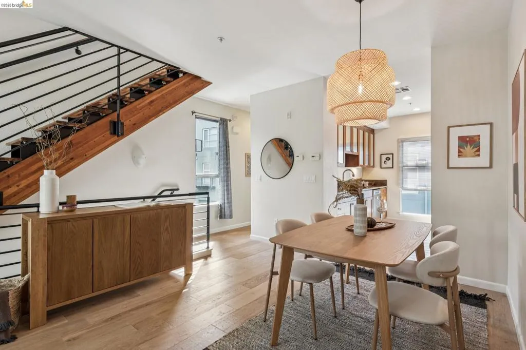 A coveted end unit situated in a row removed from the street, this 2-bedroom/2.5-bath townhouse offers the privacy and natural light of a detached house. The interior is thoughtfully designed for comfort and entertaining, with windows on three sides and an open floor plan on the main level. A spacious kitchen and a convenient half-bath for guests make hosting dinners and holiday parties easy. Upstairs, there are two bedrooms and two full bathrooms. The attached two-car tandem garage offers additional room for exercise equipment or a workshop. You are steps away from the beloved bike and pedestrian-friendly Emeryville Greenway and a half-block from coffee, breweries, and restaurants. With easy access to the freeway and public transportation, this meticulously maintained home offers modern comfort and is central to all that the East Bay has to offer.