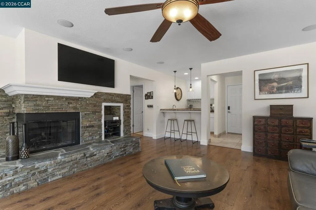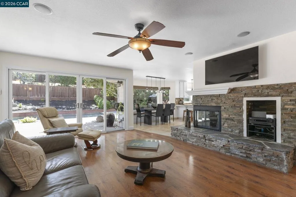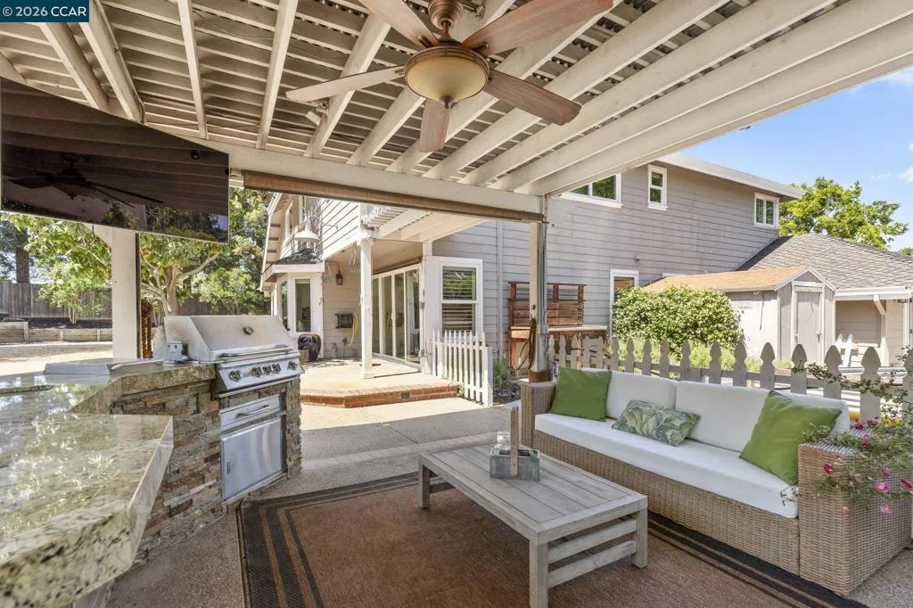 Tucked away on a peaceful cul-de-sac at the foothills of Mount Diablo, 1267 Quiet Circle offers a rare opportunity to own a truly one-of-a-kind property on the border of Clayton and Concord. This amazingly gorgeous home showcases exceptional pride of ownership in every detail, blending luxury, comfort, resort-style living and a short walk to top rated local schools! From the moment you arrive, you’ll notice the craftsmanship and care that sets this home apart - highlighted by a MUST-SEE custom garage and an expansive lot of over 16,000 square feet. The beautifully landscaped backyard is an entertainer’s dream, featuring a stunning in-ground Pebble Tec pool and spa, a custom outdoor fireplace with seating area, and a covered outdoor kitchen complete with a wood-burning pizza oven, BBQ, TV, and more. With large RV parking, custom planter boxes, and abundant space to host family and friends, this outdoor setting delivers the ultimate California lifestyle. Inside, the home continues to impress with tasteful updates including fresh paint and brand new carpeting throughout. Enjoy a chef’s kitchen equipped with a Wolf stove, wine fridge, and elegant granite countertops, all opening seamlessly to the home’s spacious living areas. Multiple gathering spaces - including the family room, living room, dining room, and wet bar - offer flexibility for both everyday living and entertaining. Two cozy gas fireplaces add warmth and charm. Upstairs, you’ll find four generously sized bedrooms, including a luxurious primary suite with an elevated retreat/office, large walk-in closet, and beautifully updated bathroom with jeted tub - creating a perfect sanctuary to unwind. Combining an unbeatable location, impressive upgrades, and resort-style amenities, 1267 Quiet Circle is a standout property that truly has it all.