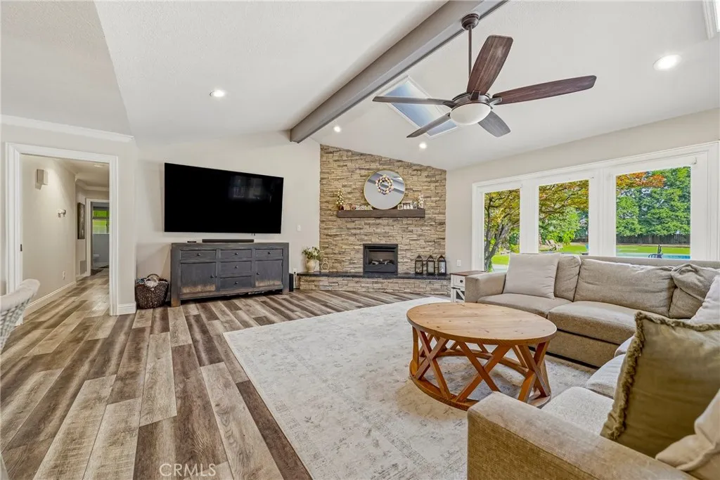 Welcome to your dream home! This gorgeous, fully remodeled 4-bedroom, 2.5-bathroom property offers over 3,000 sqft of beautifully updated living space on a full acre—giving you the perfect blend of comfort, style, and functionality. Every detail has been thoughtfully upgraded, creating a modern and inviting feel throughout. The spacious layout includes a versatile bonus room—ideal for a home office, playroom, or additional living space. Step outside and experience your own private oasis with a sparkling pool complete with a heater, an above-ground spa, and a large covered patio featuring a built-in BBQ kitchenette—perfect for entertaining year-round. The property also includes owned solar for energy efficiency and savings. Plus, a detached pool house offers incredible flexibility with 1 bedroom, 1 bathroom, a living area, and its own heating and cooling—perfect for guests, extended family, or potential rental income. This one truly has it all—space, upgrades, and endless possibilities. Unlock your happiness right here!