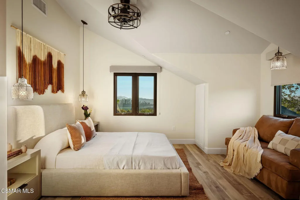 Lapeyre Ranch, an incredible opportunity in Moorpark... and this one is truly something special. Set across 10 acres of rolling, usable land, 15645 Lapeyre Road offers a rare and compelling blend of modern farmhouse living, income producing agriculture and fully realized equestrian amenities; all framed by sweeping views and endless open sky.Privately positioned at the top of the property, the newly refreshed 4,937 square foot residence captures breathtaking panoramic vistas from nearly every angle. Designed in a warm, modern farmhouse aesthetic, the home features expansive open concept living spaces, wide plank wood floors and beautiful exposed beams that create both volume and intimacy. The heart of the home is a stunning chef's kitchen, complete with a large center island, custom cabinetry, statement range and sunlit breakfast area. All seamlessly connected to the main living and dining spaces for effortless entertaining.Walls of windows and doors open to an inviting outdoor setting, where a built in BBQ, firepit lounge, and multiple seating areas overlook the surrounding orchards, barn and distant hills; creating the ultimate indoor/outdoor lifestyle.With 8 bedrooms and 3.5 baths, the home offers incredible flexibility for extended family, guests or a live/work dynamic.Beyond the residence, the property unfolds into a truly special ranch environment. Approximately 1,600 flourishing avocado trees and 425 Tango tangerine trees provide meaningful income potential, while the equestrian facilities are both functional and thoughtfully designed. A classic red barn with oversized stalls and corrals sits alongside a large riding arena, ideal for recreational riding. In addition, a substantial 40' x 60' detached shop/garage provides exceptional space for equipment, vehicles, storage, or all of your ranch needs--an incredibly valuable and versatile addition to the property.A private swimming pond with dock adds a rare and tranquil element, offering a peaceful retreat and a true connection to the land. Gently sloping acreage, mature landscaping and wide open space create a setting that feels both expansive and serene.This is a privately gated property where lifestyle, land and opportunity come together seamlessly. Whether you're seeking a working ranch, an equestrian retreat or a private estate with income producing potential....15645 Lapeyre Road is more than a home... it's a destination.