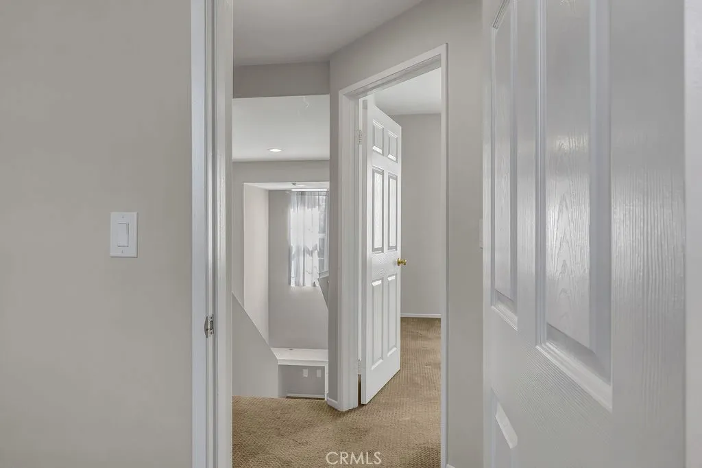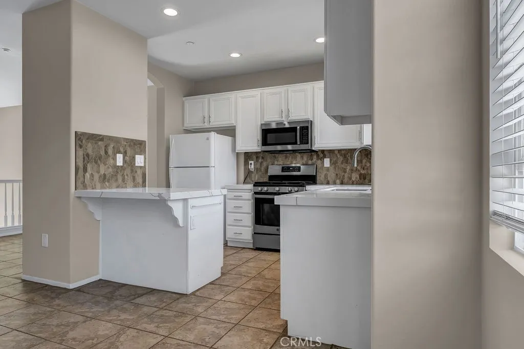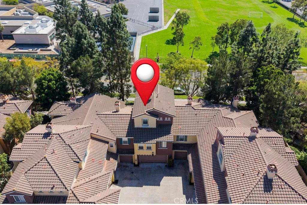 Charming and bright split-level townhome located in one of the premier interior locations within the gated Collage community of Northwood Pointe. With no homes directly across the street, this residence offers peaceful views of open greenbelt and Meadowood Park. The living room features soaring cathedral ceilings, abundant natural light, and a cozy fireplace. Fresh interior paint and ceramic tile flooring enhance the main living areas. The upgraded kitchen includes white cabinetry, quartz countertops, and matching backsplash, opening to the dining and family room on the second level for an inviting, open-concept layout. A built-in desk on the stair landing provides a convenient study/work area, and the upstairs laundry is ideally located near both bedrooms. The primary suite offers a walk-in closet, en-suite bath with vanity, and linen storage. The secondary bedroom is also en-suite with its own full bathroom. Residents enjoy beautifully maintained grounds with tree-lined walkways, community pool and spa, and access to the Northwood Pointe Olympic-size pool. Zoned for highly rated Irvine Unified schools including Canyon View Elementary and Northwood High School. Close to parks, trails, shopping, and convenient access to I-5 and local toll roads.