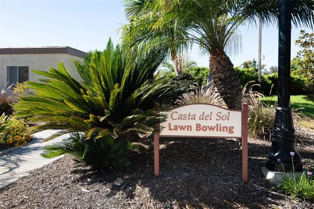Stunning, upgraded two bedroom, single-story home in Casta del Sol with a view! Beautifully updated throughout, this home features attractive flooring and large baseboards, with a living room offering a brick fireplace, ceiling fan, recessed lighting, and scenic views. The dining area includes bar seating, elegant pendant lighting, and a beautiful countertop, opening to a remodeled kitchen with white mission-style cabinetry and stainless steel appliances, along with a beautiful view from the kitchen window. The primary bedroom features a ceiling fan, recessed lighting, plantation shutters, and a beautifully remodeled bathroom with mission-style cabinetry and an upgraded shower. The secondary bedroom includes plantation shutters and recessed lighting and the guest bathroom has also been tastefully upgraded. Enjoy outdoor living on the back patio with a patio cover, electric roller screen, and peaceful views. The property also has a private front entry and a prime single-loaded street location. Additional highlights include replaced windows and a sliding door, PEX repiping, AC and FAU, and an attached 1-car garage with direct access. Residents of Casta del Sol enjoy resort style amenities including a pool, spa, pickleball, tennis, bocce ball, lawn bowling, fitness center, library, gardens, and a variety of clubs and social activities.