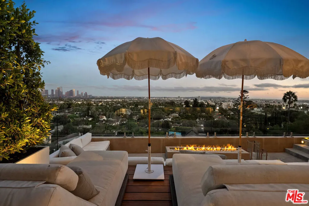 This privately-gated and former celebrity-owned contemporary hideaway sits above it all, with jetliner views stretching from Downtown LA to Century City and out to the ocean. Framed by a dramatic pivot door, the designer-done home opens to soaring ceilings, smooth Venetian plaster, hardwood floors, and sun-drenched interiors that exude a sophisticated and organic feel. The main level showcases a spacious formal living room that flows seamlessly into the dining area and chef's kitchen, designed for both effortless entertaining and everyday living. The relaxing primary suite offers a travertine-cladded spa-like bathroom with walk-in shower and separate soaking tub, a picture window framing endless panoramic vistas, and an oversized walk-in closet. Two additional guest bedrooms are replete with en-suite baths and private balconies, with an additional flexible space that can serve as a screening room, office, or fourth bedroom. Outdoors, this estate takes entertaining to the next level with a newly added outdoor kitchen/BBQ, in-ground spa, sauna, outdoor shower, and dramatic outdoor fireplace with built-in seating providing the perfect stage for al-fresco dining, sunset gatherings, or simply unwinding above the city lights. With a prestigious history, unmatched style, and coveted location just moments from the Sunset Strip and West Hollywood, this residence is truly a private retreat set against one of the most breathtaking backdrops in Los Angeles.