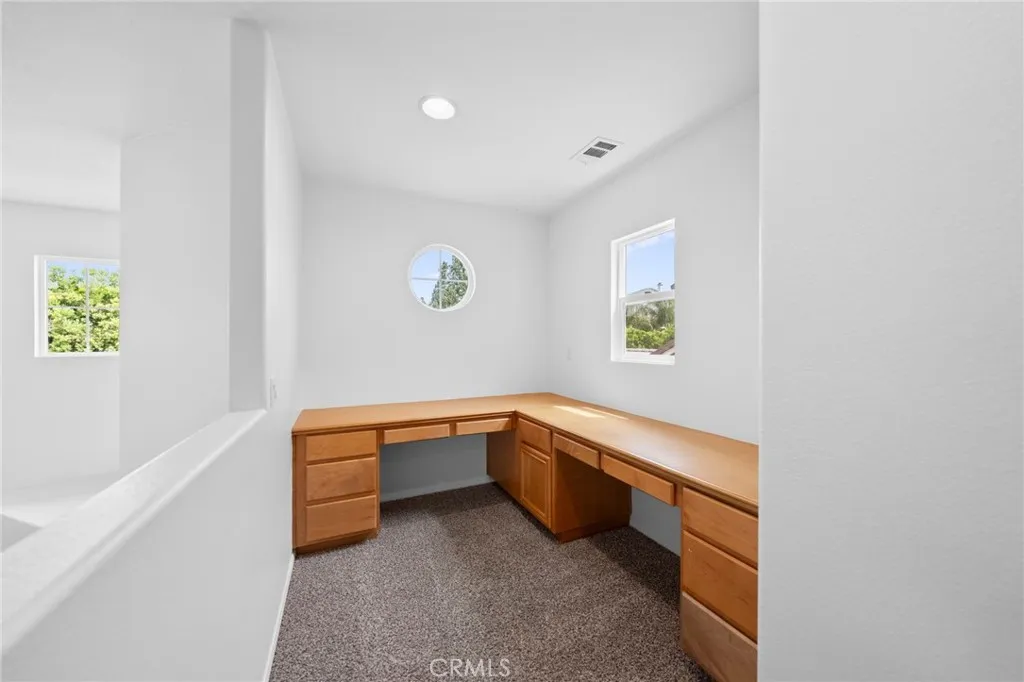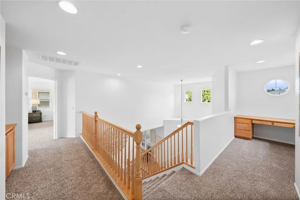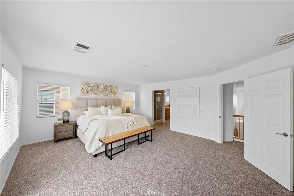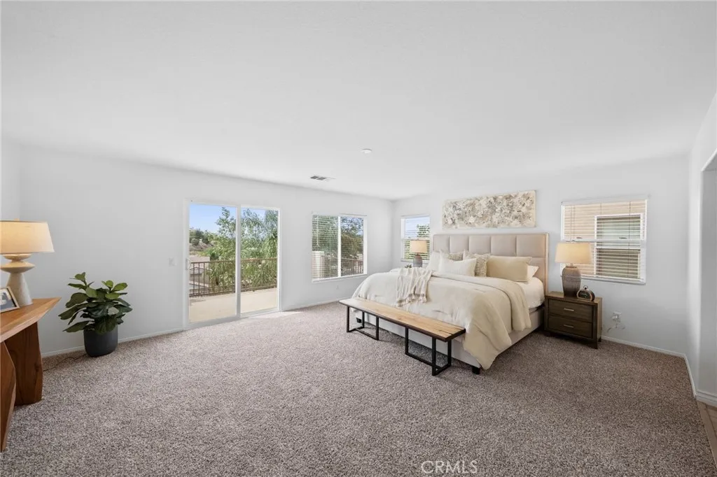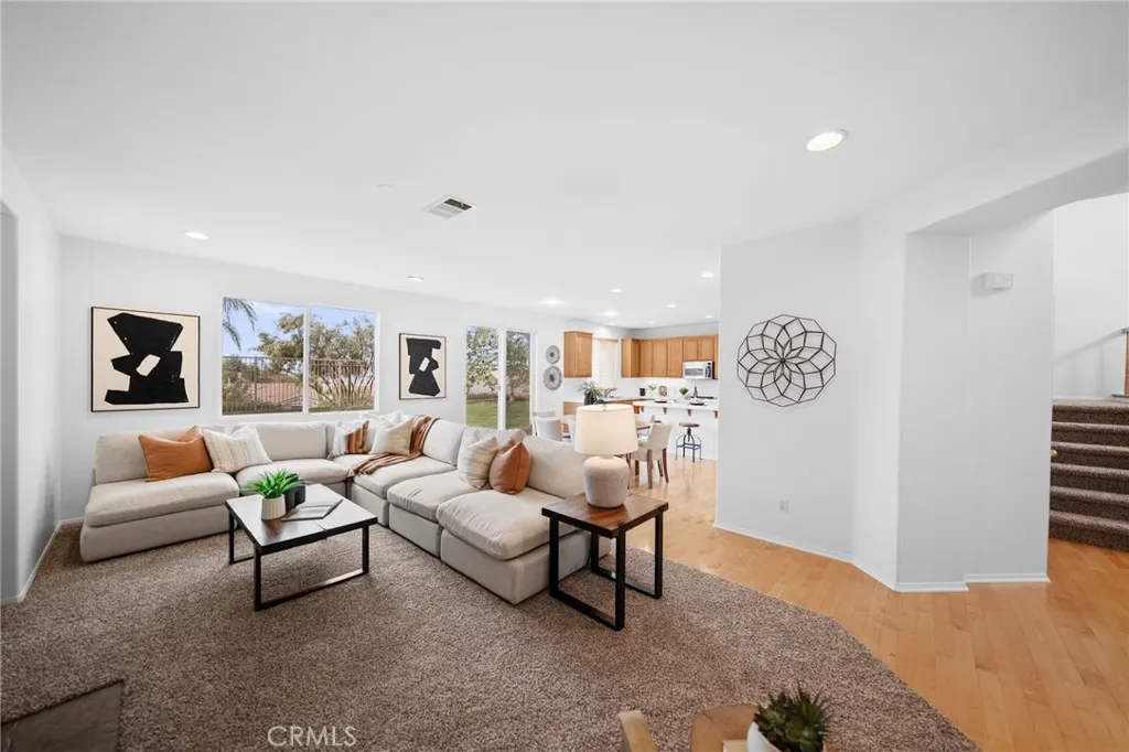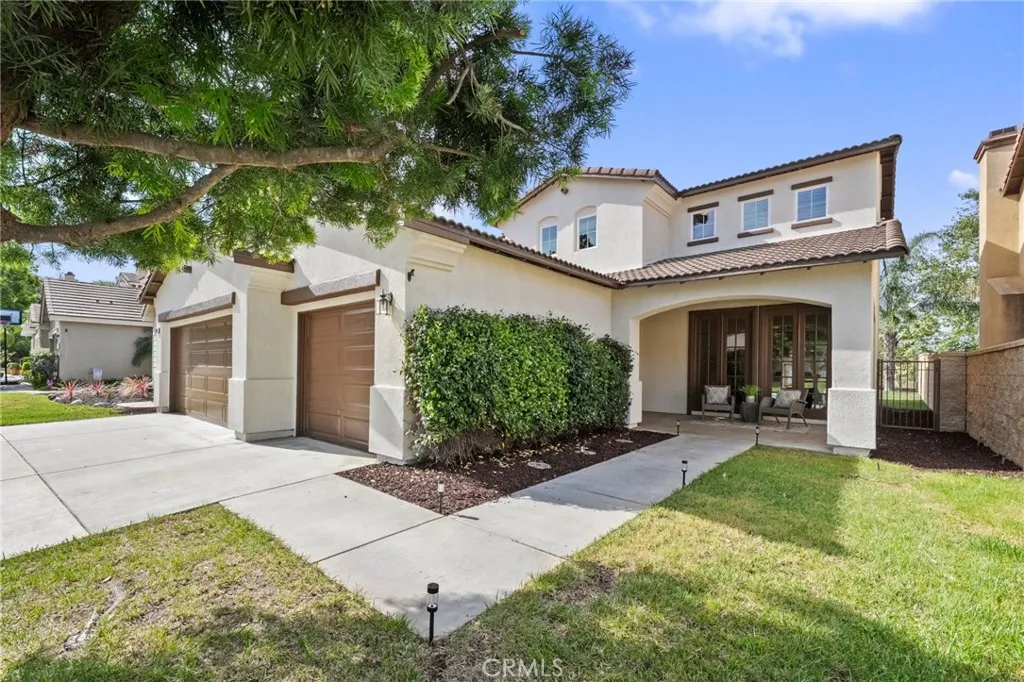Tucked at the end of a quiet cul-de-sac w/in the prestigious, guard-gated community of Greer Ranch, this beautifully refreshed 4-BR, 3-BA residence offers an exceptional blend of space, natural light, & serene hillside living. From the moment you arrive, fresh exterior paint & a charming covered front porch create a warm & inviting first impression-perfect for enjoying peaceful mornings. Inside, soaring 2-story ceilings & an abundance of natural light set the tone, complemented by freshly painted interiors & rich engineered hardwood flooring that flows seamlessly through the entry & kitchen. The formal living & dining rooms are framed by floor-to-ceiling windows & finished w/ brand-new carpet, creating an elegant setting for both everyday living & entertaining. The dining room opens effortlessly to the backyard, offering a true indoor-outdoor lifestyle. At the heart of the home, the thoughtfully designed kitchen features maple cabinets, a spacious center island w/seating, S.S. appl., & a pantry, all opening to the inviting family room anchored by a cozy fireplace. A highly desirable main-floor BR w/mirrored wardrobes sits adjacent to a full BA w/updated lighting, offering the perfect space for guests or a private home office. The laundry rm. incl. ample cabinetry + a utility sink for added convenience. Upstairs, plush new carpeting extends throughout, along w/ a built-in workstation ideal for remote work or study. 2 secondary BR share a Jack-and-Jill BA, while the expansive primary suite is privately positioned at the end of the hall. Complete w/its own private balcony, this tranquil retreat invites you to unwind while enjoying sweeping views & star-filled nights. The primary bath showcases dual vanities, a jetted tub, walk-in shower, generous walk-in closet & large windows that bathe the space in natural light, enhanced by plantation shutters. Step outside to a beautifully refreshed backyard featuring new sod, mature queen palms, & a spacious pool-sized lot-ready to enjoy or customize into your own private oasis, all set against the backdrop of rolling hills & the Temecula Valley. Residents of Greer Ranch enjoy 24-hour gated security, a resort-style pool & spa, parks, walking trails, & vibrant community events. Ideally located near the 215 & 15 freeways, w/convenient access to shopping, dining, Temecula’s renowned wineries, Pechanga Resort & Casino, & top-rated Murrieta schools, this home offers the perfect balance of luxury, comfort, & lifestyle.