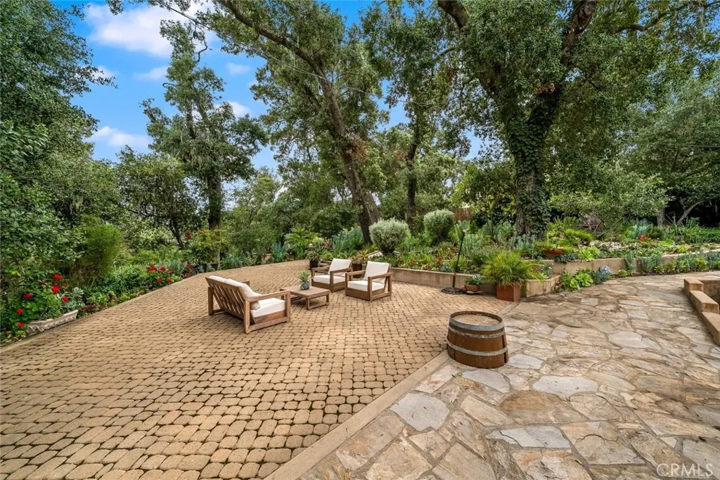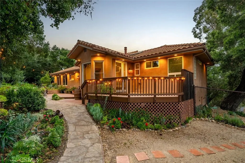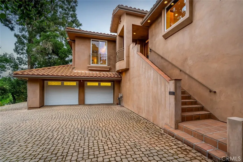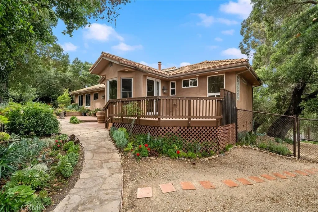 Beautifully maintained Mediterranean-style residence in Northwest Atascadero, offering exceptional privacy, space, and picturesque hill views. Built in 2001, this 3 bedroom, 2.5 bathroom home, plus a versatile office or flex room, spans approximately 2,957± sq ft on nearly a half-acre parcel. The main living area is thoughtfully arranged on a single level, offering the ease and comfort of single-level living once inside, with the home originally designed to accommodate a future elevator. Vaulted ceilings, Spanish tile flooring, and two fireplaces create a warm yet sophisticated ambiance, while the light-filled open living spaces flow effortlessly into a generously sized kitchen featuring abundant custom cabinetry and storage. The primary suite serves as a private retreat, complete with its own fireplace, dual walk-in closets, and a secluded deck overlooking the serene backyard setting. Two additional bedrooms and bathrooms provide comfortable accommodations for family or guests. Outdoor living is equally inviting, highlighted by mature oak trees, multiple view decks, and a spacious hardscaped patio ideal for entertaining or quiet relaxation. Additional amenities include owned solar, a newer HVAC system, updated appliances, ample storage throughout, and an attached two-car garage with built-in cabinetry and workspace. Ideally located just minutes from downtown Atascadero, Atascadero Lake Park, local trails, and schools, this property offers a rare combination of tranquility and convenience in one of the area’s most desirable settings.