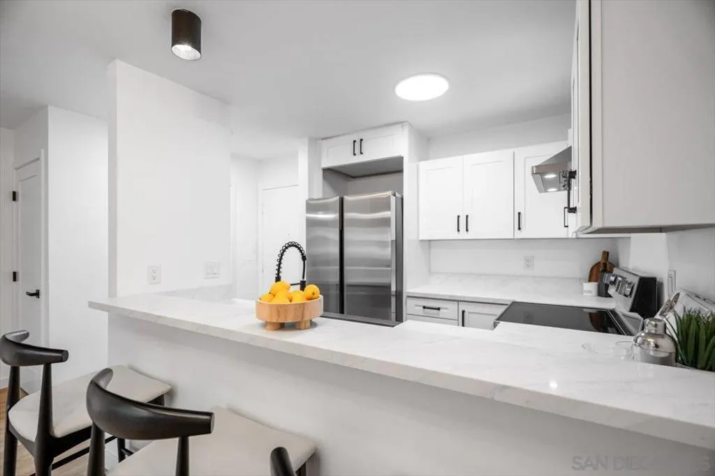 Incredible opportunity to own a beautifully renovated 1-bedroom condo in the highly desirable Bay Ho community. Whether you’re a first-time buyer or investor, this turnkey home delivers coastal convenience and strong value. Bright and completely refreshed, this home features stunning luxury vinyl plank flooring, sleek quartz countertops, and all-new stainless steel appliances. The thoughtful layout maximizes storage, offering plenty of cabinet space in both the living area and the bedroom. The updated bathroom serves as a comfortable retreat, featuring a spacious vanity and a shower/tub combo. Step outside to your private balcony to enjoy the coastal breeze, or take advantage of the fantastic community amenities, which include a sparkling pool, jacuzzi, BBQ area, and a scenic deck area complete with a bay view! You simply can't beat this location. A quick 5-minute drive connects you to local restaurants, Costco, and major freeways. Plus, you are just moments away from local beaches, Belmont Park, Fiesta Island, and everything else San Diego has to offer.