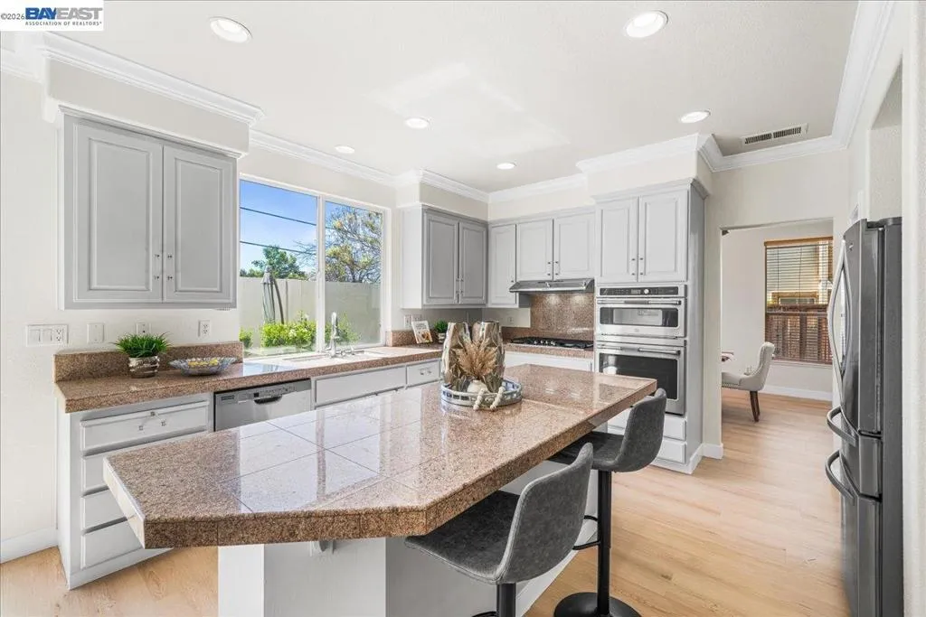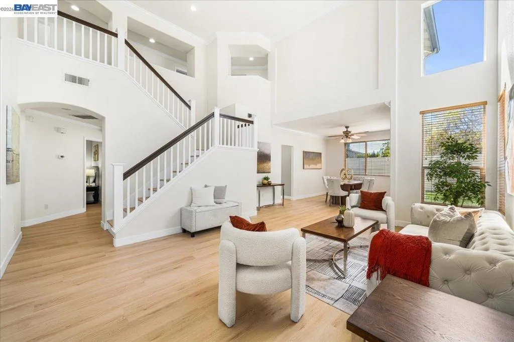 Elegant luxury North-facing Warm Springs home offering 6BD/4BA in 3,058 sq ft on a 6,000 sq ft lot built 1998*Grand entry w/soaring ceilings & abundant natural light*Inviting formal living & dining rooms w/ chandelier*Open kitchen features granite counters & backsplash, freshly painted cabinets, recessed lighting, 5-burner gas cooktop, matching appliances & large walk-in pantry*Cozy breakfast nook w/ sliding door to backyard*Spacious family room w/gas fireplace & custom wall niche, perfect for relaxing or entertaining*Ground level incl: 1BD/1BA ideal for guests or multi-gen living, plus laundry room w/ extra cabinetry*Expansive primary suite w/vaulted ceilings & serene ambiance*Spa-like bath w/soaking tub, separate stall shower, tile floors, dual sinks, split layout & huge walk-in closet w/organizers*Hall bath offers dual vanity + shower/tub combo*En suite guest bedroom w/private bath*Upgrades include new luxury vinyl flooring, 4.5" baseboards, dual pane windows, central heat & A/C, copper plumbing. 3-car garage + wide driveway*Beautifully landscaped front & back yards w/concrete patio, ideal for outdoor living*Located near distinguished schools. Great location w/easy access to freeways 680, 880, and 237 as well as Warm Springs BART. Open house Sat 4/11 & Sun 4/12~1:00-4:30 PM