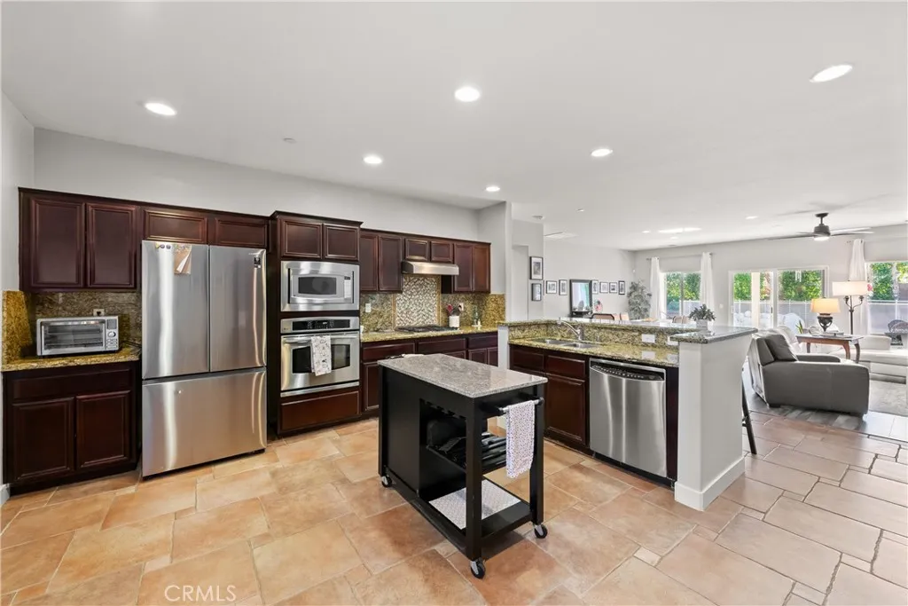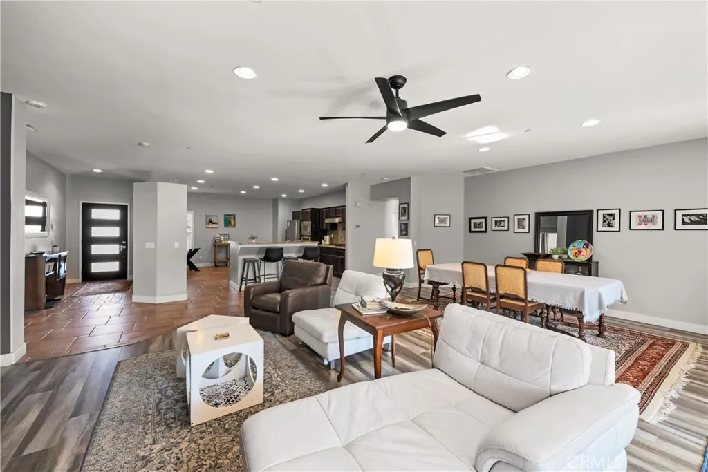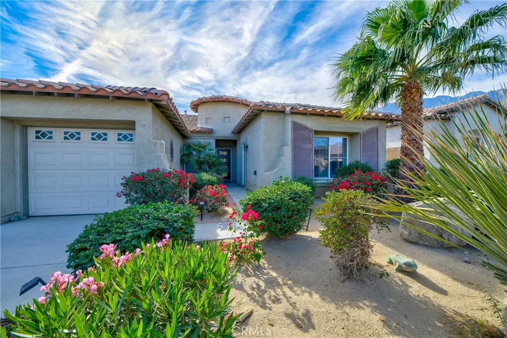 Nestled in a serene, gated neighborhood just minutes from the vibrant heart of downtown Palm Springs, Mountain Gate's Bella Model offers 3 bedrooms and 2 baths with an attached Casita for a perfect blend of comfort, style, and convenience. The home boasts a spacious open floor plan, and the attached casita/4th bedroom/3rd bath, has its own entrance, perfect for guests or private office space. Entering the home, you immediately feel the calm, inviting energy as the view of the backyard welcomes you. An entertainers delight, with the flow of the living areas opening onto the rear patio, allowing guests to enjoy both indoor and outdoor conversations. The gas fireplace in the living area is perfect for cozy relaxation on those cooler evenings. In 2021, the home was freshly painted, new 4” baseboards added, beautiful new luxury laminate flooring throughout the living areas and bedrooms installed, offering a sleek and low-maintenance aesthetic. Two of the bedrooms and the living area offer new sliding doors installed in 2022 as well as a new tank-less water heater. The eat-in kitchen is equipped with stainless steel appliances, ample cabinetry, and a breakfast bar for casual dining. The spacious primary bedroom suite is a true retreat, complete with an en suite bathroom featuring dual vanities, a soaking tub, walk-in shower, and generous walk-in closet. Additional features of the home include a 3-car garage, an RV parking pad for your convenience, and residents enjoy access to 3 community pools, tennis courts, a basketball court, an outdoor grilling area, and a playground, making it an ideal place for both family and friends relaxation and recreation.