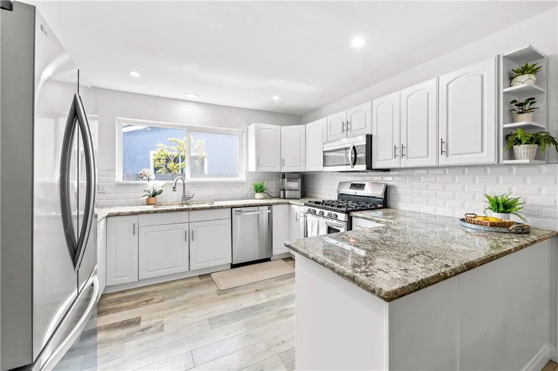 Tucked into a quiet interior tract in the heart of Cypress, this beautifully remodeled 4 bedroom, 2 bathroom home checks all the boxes! Blending timeless comfort with thoughtful, modern upgrades throughout. From the moment you step inside, you’re welcomed by the fresh paint, newly installed receessed Led lighting and on-trend luxury vinyl plank flooring that flows seamlessly from room to room, creating a warm and cohesive living environment. Designed for both everyday living and effortless entertaining, the inviting living room is anchored by a charming brick fireplace, and features vaulted ceilings, this space offers the perfect setting for cozy evenings at home. The remodeled kitchen has been remodeled with both style and functionality in mind, with white cabiinets and grantie countertops that provide a clean, open space to gather, cook, and connect. Both bathrooms have been tastefully updated with modern finishes, while a long list of system upgrades adds incredible value and peace of mind—including full PEX plumbing repipe, a tankless water heater, whole-house water filtration system, upgraded 200-amp electrical panel, replaced ducting, and a whole-house air filtration system. Dual-pane windows and central HVAC with all new ducitng ensure year-round comfort and energy efficiency. The upgraged 200 amp electrical panel will allow for EV vehicle charging. Ideally located within a highly sought-after community known for its top-rated schools, Patton Elementaty, Bell Intermediate and Pacifica High School. Nearby parks, and convenient access to shopping and dining, this move-in ready home offers the perfect blend of lifestyle, location, and livability.