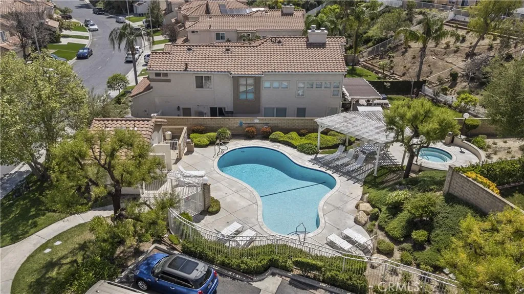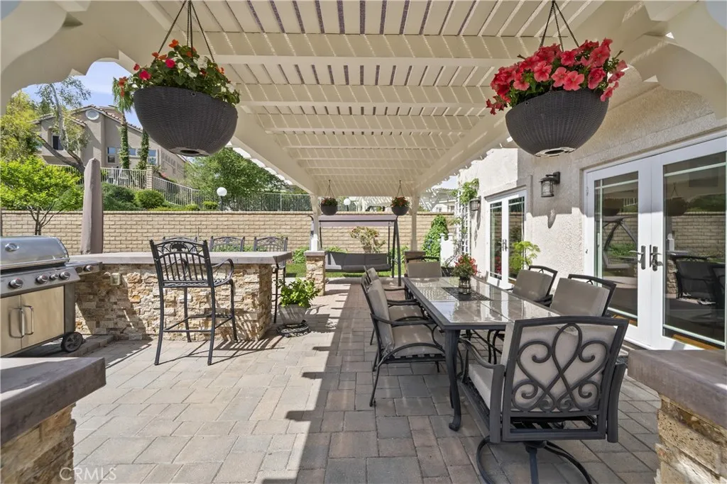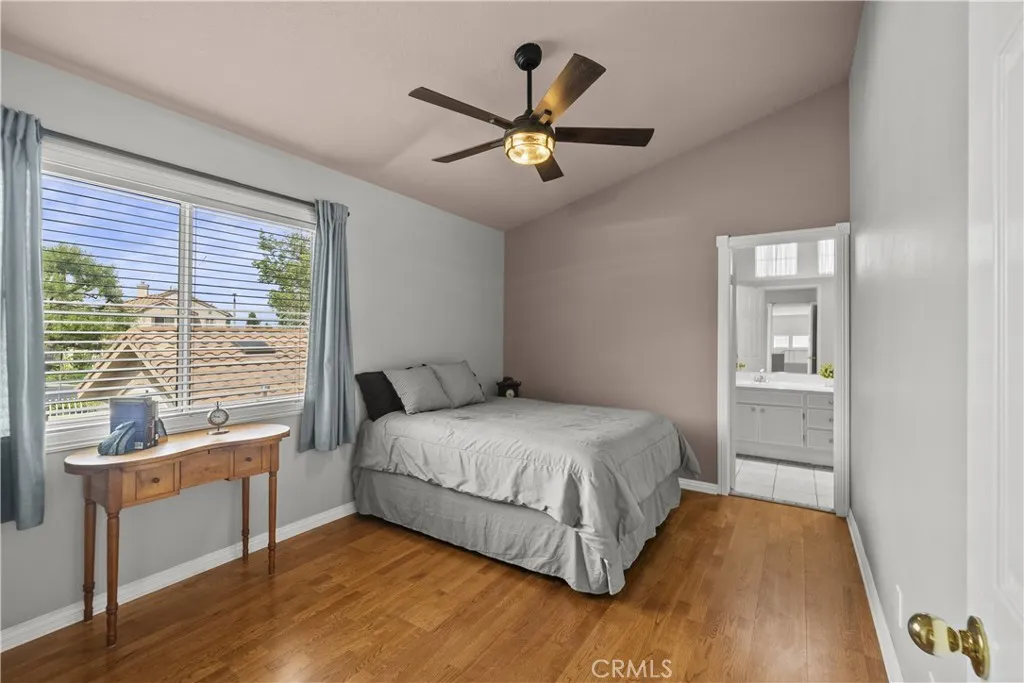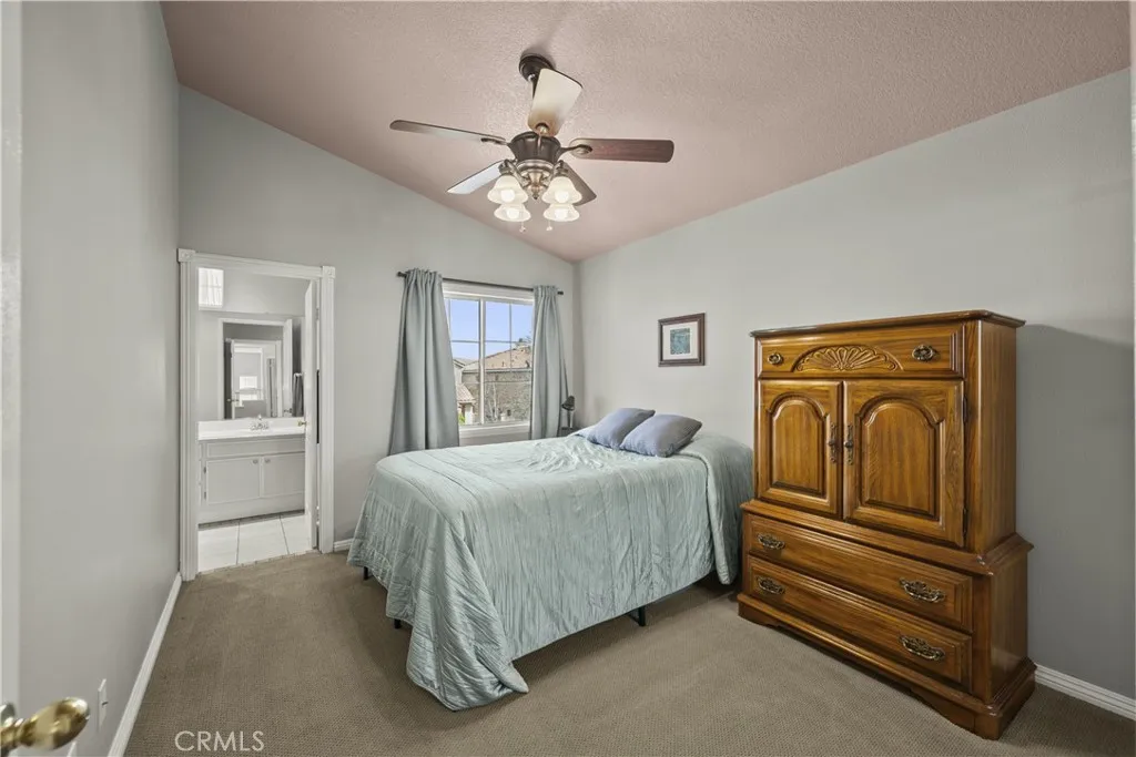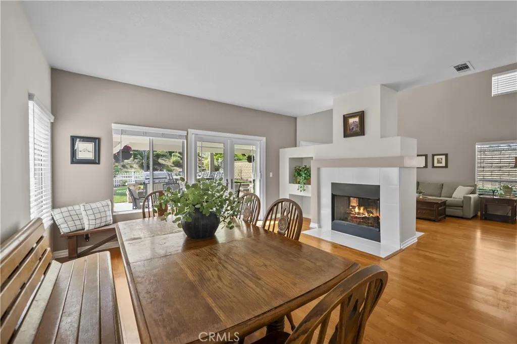 Welcome to this beautifully upgraded 4-bedroom, 3-bathroom home in the desirable Montecito community of Santa Clarita, ideally located just off the 14 Freeway and near Golden Valley shopping, dining, and everyday conveniences. Offering approximately 2,291 sq ft on an 8,121 sq ft lot, this home features a full bedroom and bathroom downstairs, soaring ceilings, abundant natural light, and a functional, inviting layout. The living and dining areas feature a dual-sided fireplace, creating a warm and connected space for entertaining. The updated kitchen showcases granite countertops, stainless steel appliances, ample cabinetry, and flows seamlessly into the main living areas. Upstairs, the spacious primary suite features double door entry, its own fireplace, and a large ensuite bathroom with dual sinks, a soaking tub, separate walk-in shower, private water closet, and walk-in closet. Two additional bedrooms share a Jack and Jill bathroom. The backyard is a private retreat with lush landscaping, a detached pergola, built-in barbecue, and fire pit, ideal for outdoor living and entertaining. Additional highlights include wood-like flooring, neutral decor, upgraded windows and sliders, a new HVAC, owned solar, a two-car garage, and close proximity to the community pool, making this home a perfect blend of comfort, style, and convenience.