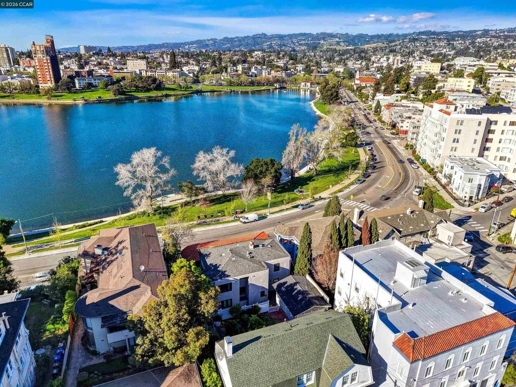 Stunning lakefront duplex with unmatched charm. A remarkable opportunity to own a gorgeous duplex that boasts breathtaking views over Lake Merritt. This beautifully renovated Mediterranean-style masterpiece perfectly combines classic elegance with modern amenities, offering an exceptional living experience. Step inside to find a chef's kitchen, paired with tastefully remodeled bathrooms that exude a contemporary flair. The thoughtful layout features spacious interiors adorned with pristine hardwood floors throughout, ensuring both comfort and style in every room. Both units are 2 bedrooms and 2 baths with options for a den, family room, or a third bedroom. Dramatic windows showcase panoramic lake views, perfect for watching the sunset. The upper unit includes a charming Juliet balcony for enjoying morning coffee with a view. In addition to the two upper units, a bonus space on the 3rd bottom level has been converted into a studio with a separate entrance. Whether you're seeking a unique family residence or an exceptional investment opportunity in the vibrant Oakland market, this duplex is poised to impress. Don’t miss your chance to make this extraordinary property your own—where the beauty of Lake Merritt meets the charm of a carefully crafted home.
