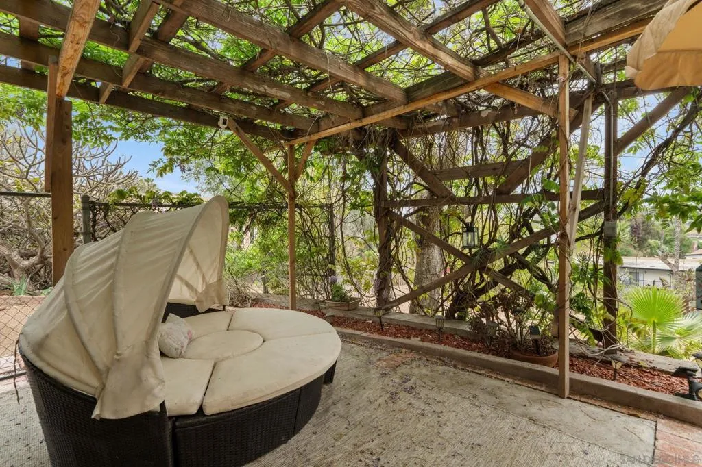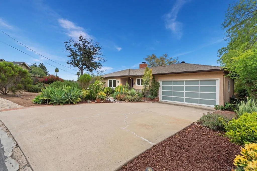 Perched atop a serene hillside on nearly 1/2 acre, this beautifully updated La Mesa Village residence captures sweeping southerly views of distant mountains and rolling neighborhood vistas. A striking first impression is created by the home’s curated curb appeal, where a vibrant, mature succulent landscape and statement entry door set a refined tone. Inside, rich hardwood floors, elegant coved ceilings, and expansive living spaces are thoughtfully oriented to showcase the views at every turn. The inviting living and dining areas are anchored by a charming fireplace, while the designer kitchen seamlessly connects with abundant custom cabinetry, generous prep surfaces, and a complementary backsplash. Just beyond, a covered, elevated deck offers an ideal setting for al fresco dining or quiet sunset moments overlooking the tranquil grounds below, where shaded seating areas and whimsical garden spaces invite relaxation. The home continues with three spacious, light-filled bedrooms, while the attached two-car garage offers exceptional functionality with built-in storage, a dedicated workroom with cabinetry and sink, and an additional half bath. On the lower level, a private one-bedroom guest suite with full kitchen and bath presents a versatile opportunity for multigenerational living, a home office, or supplemental income. Additional highlights of this 19,822 sq. ft lot property include central heating and air conditioning, dual-pane windows, whole-home water filtration, garage attic storage with pull down ladder and 6 Ring camera system. Ideally located just moments from the charm of La Mesa Village, this residence enjoys exceptional walkability to beloved local shops, dining, coffee houses, and the weekly farmers market, as well as nearby Collier Park with its tennis courts and recreation areas—offering a rare blend of hillside privacy and vibrant village living. Additional architectural plans included for future ADU build (3 different options), plus plans for the expansion of the main house on the left, rear and right sides! This is a true must see!