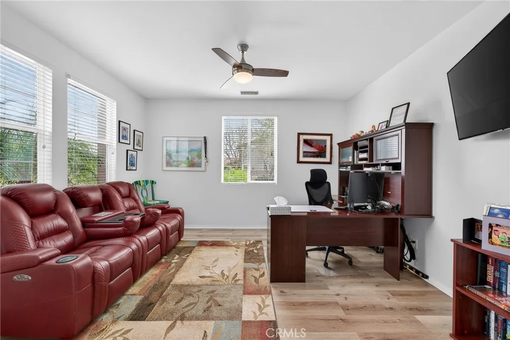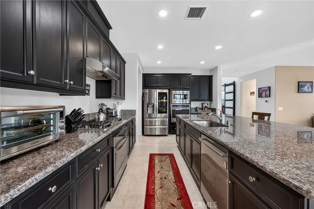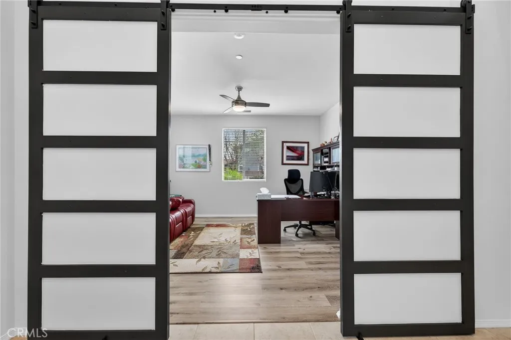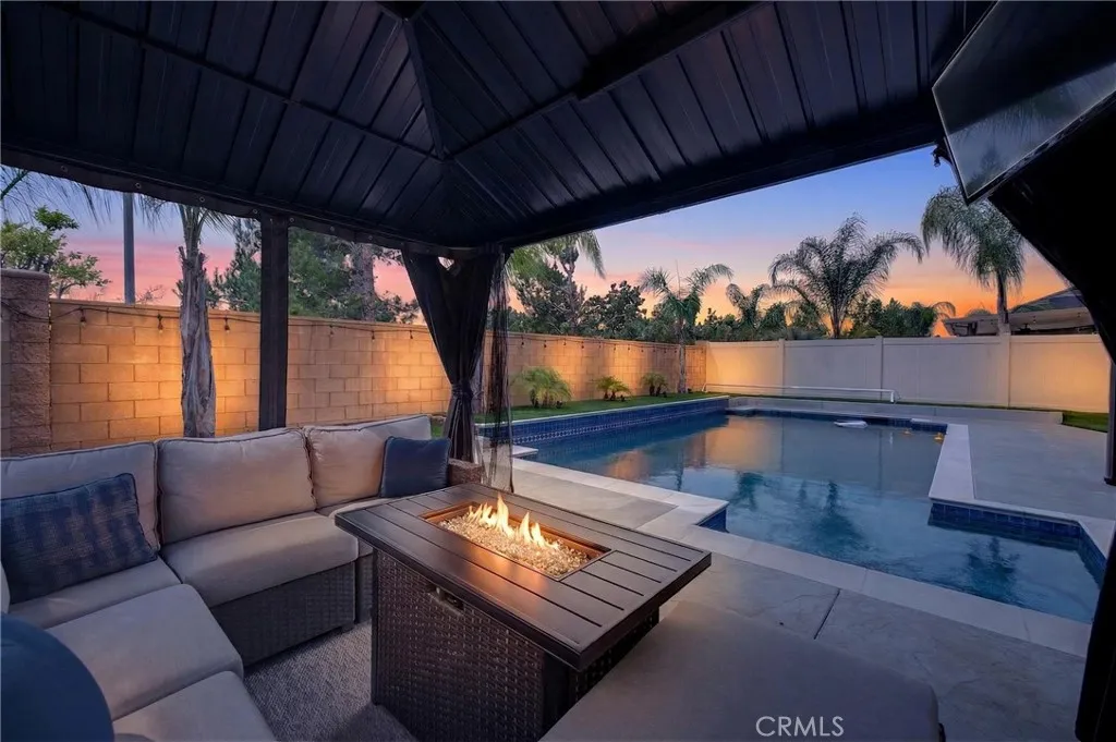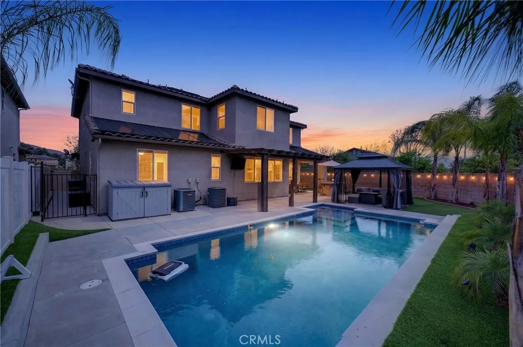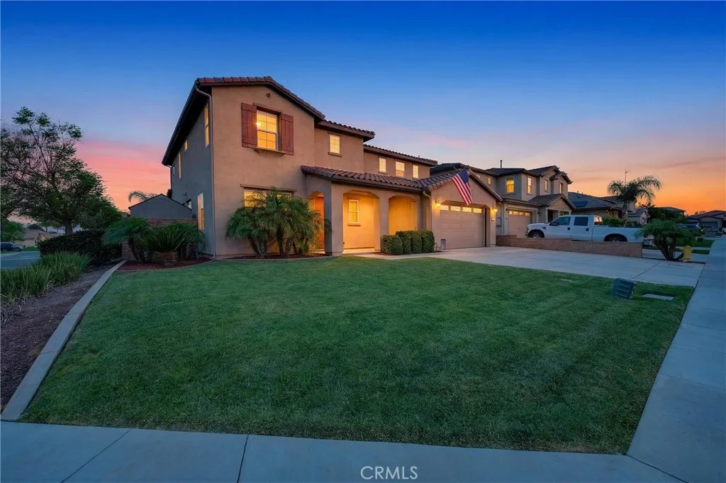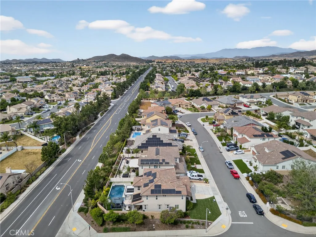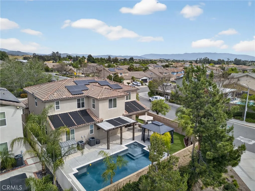 Location, Location Welcome Home to your Dream Backyard. Your Own Oasis, an Entertainers Dream home is found in the highly sought after neighborhood of Winchester Ca, in the heart of French Valley, this is a K. Hovnanian Model Home, Stunning, two-story open floor plan, on a corner lot in Vineyard Heights. There are upgrades galore, pool solar comes with the home, custom barn doors for main floor office, whole house fan quiet cool system, two Aluma-wood patio covers, you must come see all the upgrades.. You drive up to the beautiful curb appeal, walk up to the very large porch, enter through the entry door, into the grand foyer, cathedral high ceilings, natural sunlight coming through the windows, and you see the custom-made barn doors, they go into the main floor office, there is a main floor bathroom, and storage closet, also a mudroom, before going out to the garage. Then you go up the staircase, that leads you to the upstairs, includes, four more bedrooms, and three walk-in closets, large loft, and large laundry room, with a three car tandem garage, renovated part of garage is another office now from 2020. Your own backyard Oasis is a Entertainers dream, with a sparkling blue pool, and lighting, built in BBQ, two Aluma wood patio covers, one with patio set, and fan ,standing gazebo with netting, also the lawn is low maintenance artificial grass. This spacious two-story home has living space of 3,549 square feet, with leased solar panels. This home highlights Chefs Kitchen with large granite Island, brown shaker cabinets, with lots of storage, stainless steel appliances, microwave oven, five burner stove, double ovens, range hood, a large butler’s pantry, and a large walk-in pantry, open floor plan into living room, dining room. Off the chef’s kitchen, main floor bedroom and bathroom, and media room. Upstairs is the Primary Bedroom Suite, with fan, and Primary Bathroom, double vanity, soaking tub, walk-in shower, and lighted walk-in closet. Prestigious Temecula Unified School District Elementary Susan La Vorgna, Rancho Bella Vista Middle, and Chaparral High School. Close to Parks, walking distance to Sheffield Park. Close to Shopping.
