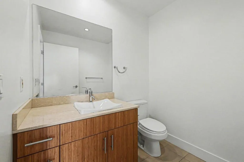 A thoughtfully designed layout and expansive windows shape this 2-bedroom, 2.5-bath home in San Franciscos Mission Bay district, where natural light plays a central role in the overall living experience. The living and dining areas connect with ease, offering flexibility to arrange seating, establish a media zone, or accommodate a full dining table. Floor-to-ceiling glass enhances this openness, drawing in light while extending the main living area visually and spatially. From here, sliding glass doors lead directly to the patio, while wood flooring carries a consistent, polished look throughout. Just beyond, the kitchen is arranged to support both movement and functionality, with extensive cabinetry, sleek countertops, and stainless steel appliances. Its proximity to the dining area allows for a natural transition between cooking and gathering. Privately set apart, two bedrooms and two-and-a-half baths provide flexibility for a variety of needs, including sleeping quarters, a home office, or guest accommodations. Mission Bay places waterfront paths, Mission Creek Park, and Oracle Park within easy reach. Guss Community Market, Safeway, Blue Bottle Coffee, and Mission Rock Resort are all nearby, offering a well-connected mix of daily essentials and local favorites.