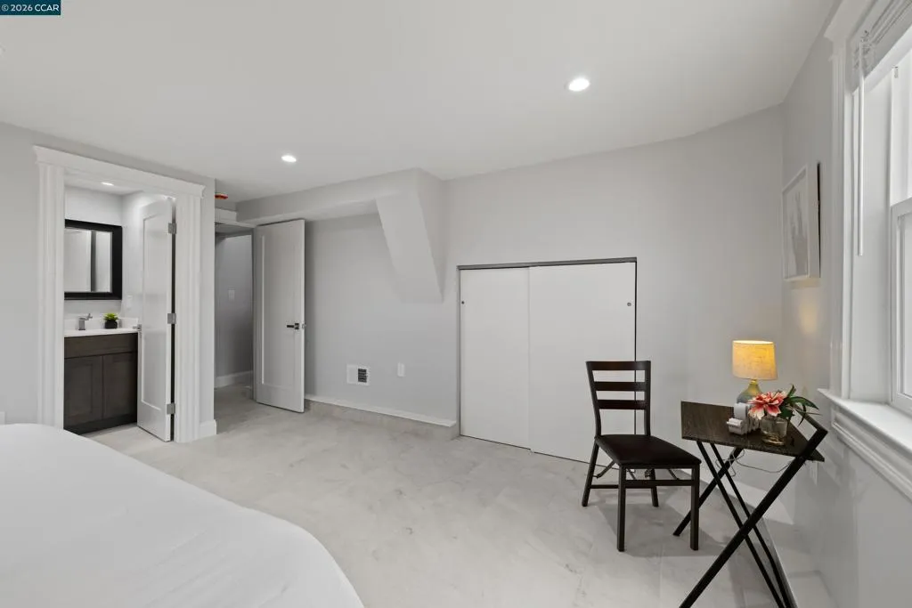 This beautifully remodeled 1,312-sq ft, two-story home truly checks all the boxes, showcasing thoughtful upgrades & timeless finishes throughout, this home offers both comfort & style. Discover refinished hardwood floors, abundant natural light & freshly painted interior enhanced by recessed lighting, custom textured ceilings & new dual-pane windows. Open-concept main level seamlessly connects the living, dining & kitchen spaces, perfect for both everyday living & entertaining. Living room features hardwood flooring, recessed lighting, wood-burning fireplace w/ tiled trim & wall of windows filling the space w/ light, creating an open & airy ambiance ideal for gathering w/ family & friends. Spacious dining area flows effortlessly into the fully remodeled kitchen w/ stunning quartz countertops, custom cabinetry & brand-new stainless-steel appliances. The kitchen overlooks the expansive backyard & offers direct access to the patio, making indoor-outdoor living a breeze. Primary bedroom features walls of windows, recessed lighting & generous closet. Updated full bathroom w/ quartz countertops, modern vanity & custom-tiled shower over tub. 2nd bedroom offers comfort & versatility w/ hardwood flooring & ample closet space. 3rd bedroom features private entrance & remodeled ensuite.