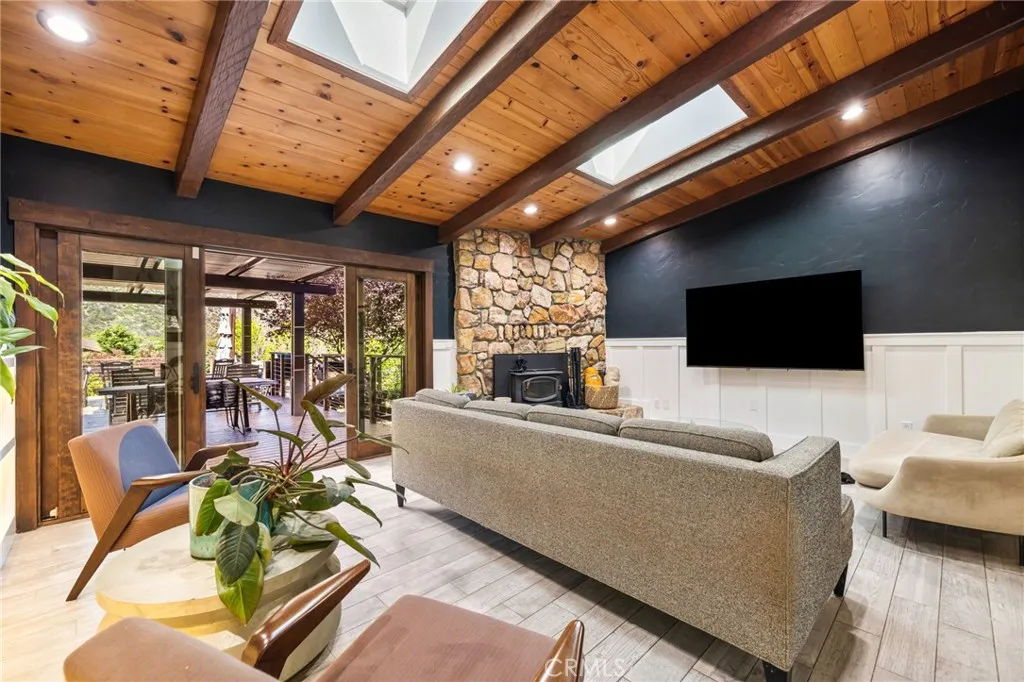 Welcome to Garner Valley, an equestrian-friendly community known for its scenic landscapes and unmatched sense of space. This private mountain property backing up to the National Forest with equestrian improvements and ADU, offering flexibility, privacy, and usable land. Updated 3 bedroom main home plus ADU bedroom for a total of 4 bedrooms, located in Mountain Center. The property is fully fenced and cross fenced, suitable for equestrian or rural use. The main home features a sunken living room, large windows with natural light and mountain views, and a spacious kitchen with ample counter space and storage. Interior and exterior have been recently painted with updates throughout. Outdoor features include a Trex deck with spa, outdoor shower, and usable land with established horse facilities, and sprinklers for a lush turnout. Equestrian improvements include Priefert fencing, a 60 foot round pen, and setup for horses and livestock. Detached ADU includes a kitchen, bathroom, and garage, providing flexible use options. Additional features include attached garage, EV charging capability, two septic systems, heat pump in main home, water filtration system, security system, and upgraded window coverings.