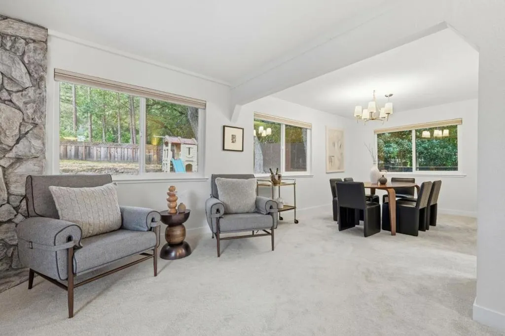 This beautifully updated single-family residence in Scotts Valley offers 2,226 square feet of thoughtfully designed living space, featuring three bedrooms and two-and-a-half bathrooms. The functional floor plan includes both separate living and family rooms, each enhanced by a cozy wood-burning fireplace -- perfect for both everyday living and entertaining. Designer touches and quality upgrades are showcased throughout, including a charming bay window and a spacious primary suite complete with a walk-in closet. The kitchen is designed for versatility, offering both a formal dining area and a convenient breakfast bar. Set on an expansive 0.28-acre lot, the property enjoys a serene, park-like setting and ample space for gardening and outdoor enjoyment. Blending privacy with convenience, this gorgeous home offers easy access to local shopping and is just a 15 minute drive to the beach -- making it a perfect retreat in the heart of the Santa Cruz Mountains.