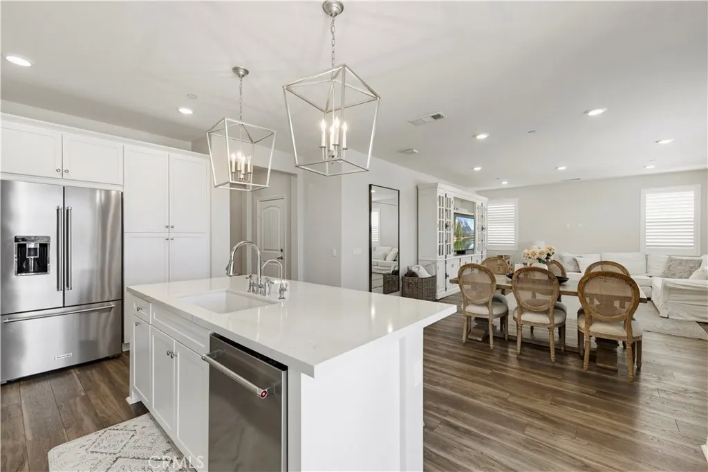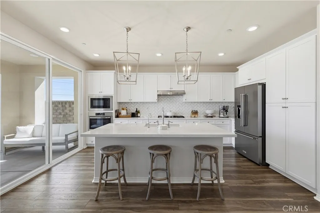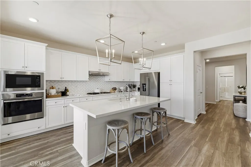 Picture-perfect and fully updated, this view lot home has been impeccably maintained and thoughtfully upgraded throughout. Offering 4 bedrooms and 3 bathrooms, each bedroom features oversized closets that feel anything but standard. Located in one of the most sought-after school zones in town—West Hills Elementary School, Rio Norte Junior High School, and Valencia High School—this home blends lifestyle and location seamlessly. Inside, you’ll find luxury vinyl flooring throughout with no carpet, creating a clean, modern flow from room to room. The kitchen is elevated with quartz countertops, a custom herringbone backsplash, and upgraded KitchenAid appliances including a premium dishwasher and refrigerator. Step outside to a completely reimagined backyard featuring turf, concrete hardscape, and a built-in fireplace—all perfectly positioned to take in the incredible, unobstructed views. Enjoy the added benefit of solar, helping keep energy costs down while living comfortably year-round. The community truly elevates the lifestyle, offering one of the best HOAs around with a pool, spa, parks, and scenic paseos—plus local favorites like family food truck nights and movies in the park that bring neighbors together. With a true sense of pride of ownership and designer-level finishes throughout, this home is as functional as it is stunning.