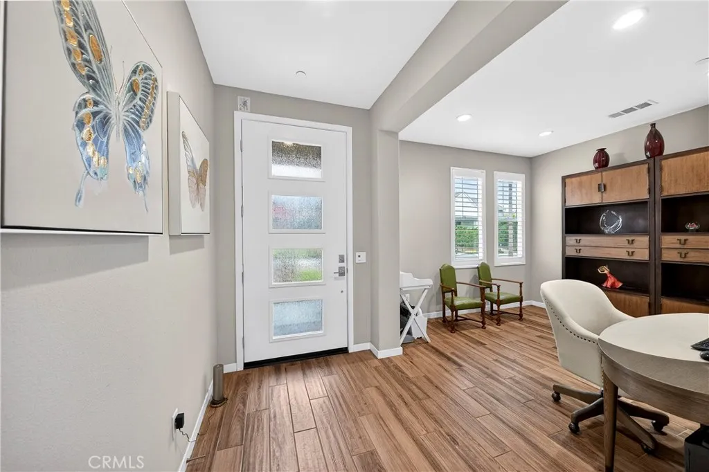 Welcome to this stunning single-family residence located in the prestigious Verano at Aliento community. This 2-bedroom, 2.5-bathroom home boasts a beautifully landscaped private backyard and sophisticated design throughout. Upon entry, you are greeted by a versatile den, currently used as a home office. The primary suite featuring a spacious walk-in closet and a spa-like bathroom with dual sinks and a separate soaking tub. The second floor offers a full guest suite and a flexible bonus room that opens onto a private balcony—perfect for hosting visitors in comfort. The gourmet kitchen is equipped with a large center island, elegant quartz countertops, double-stacked cabinets, a pantry, and stainless steel appliances. It looks more open and wide with high ceilings and premium plantation shutters, the open floor plan feels bright and airy. Seamless indoor-outdoor living is made possible by sliding glass doors that lead to a private patio with trees and mountain views. Additional highlights include a separate laundry room, vinyl plank flooring, upgraded carpet, and recessed lighting. You’ll enjoy world-class community amenities including pools, spas, fitness centers, clubhouses, and access to two community centers. Residents of the Verano, 55+ community situated near premier shopping, dining, freeway access, and scenic hiking trails. Don't miss your opportunity to own this gem.
