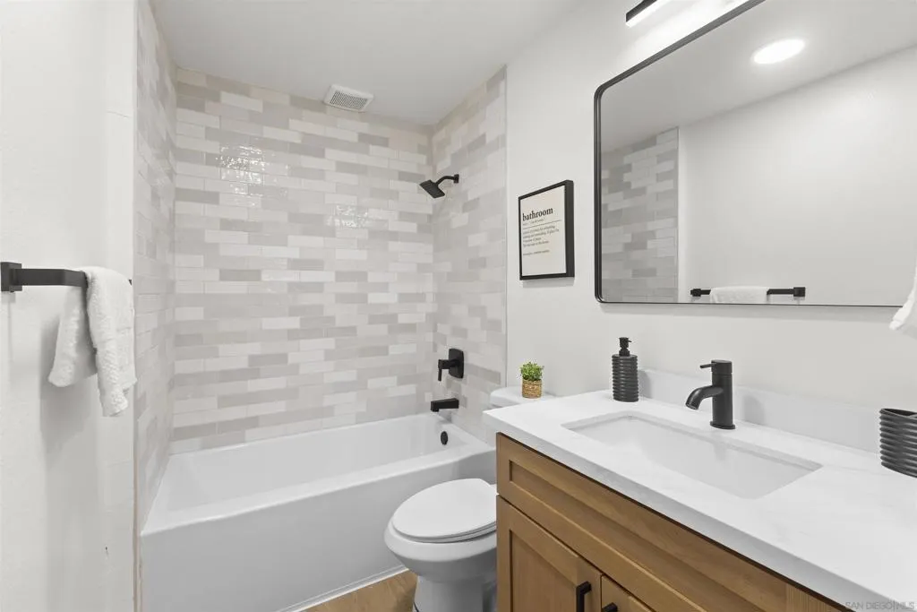 Welcome to this newly renovated condo! Thoughtfully remodeled with a modern design, it does not disappoint with beautiful countertops, cabinets, flooring, and all new appliances. The contemporary light fixtures and cozy fireplace brings the home together with character. Enjoy resort-style living with community amenities including a swimming pool, spa, tennis courts, fitness center, clubhouse, outdoor grills, and picnic areas. Ideally located near major freeways, trolley stations, Snapdragon Stadium, Mission Valley malls, and close to USD, SDSU, SeaWorld, Mission Bay, Old Town, and Downtown San Diego. Don't miss out on this delightfully charming home!