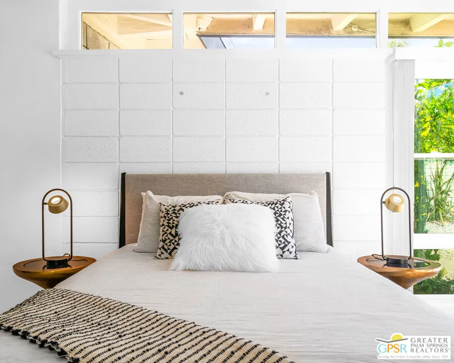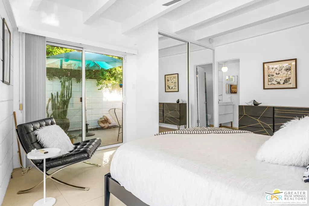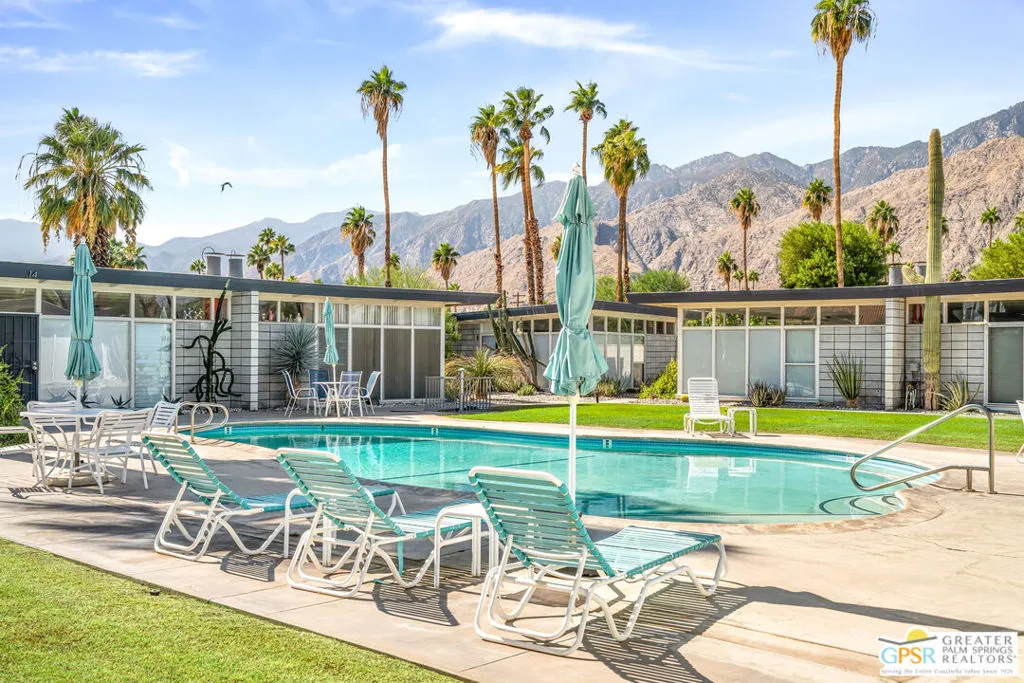 Outstanding opportunity to purchase at rarely available Desert Holly--a 14 unit, 8 building Historically Designated Mid-Century property (Mills Act reduced property taxes!) in the heart of Central Palm Springs-Sunrise Park designed and built by Long Beach builder & developer William J. O'Brien, Jr. and is sited close to downtown PS, PSP International and I-10. This stand-alone/detached home offers soaring walls of glass, original fireplace, renovated chef's kitchen and baths. Stunning terrazzo tile floors, upscale appliances , designated parking, 2 private patios and is just steps away from the community pool. This property is currently being used as a successful seasonal rental. Would make a great primary residence, second home or continue its current use as a rental/investment property. Outstanding condition with pride of ownership abounding. Move in, unpack and enjoy!