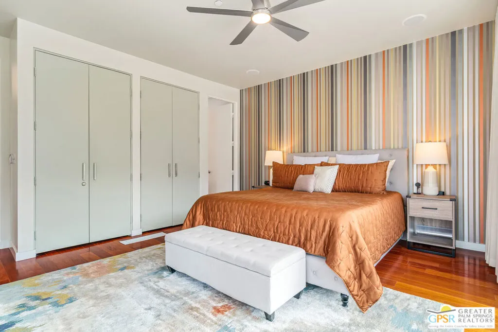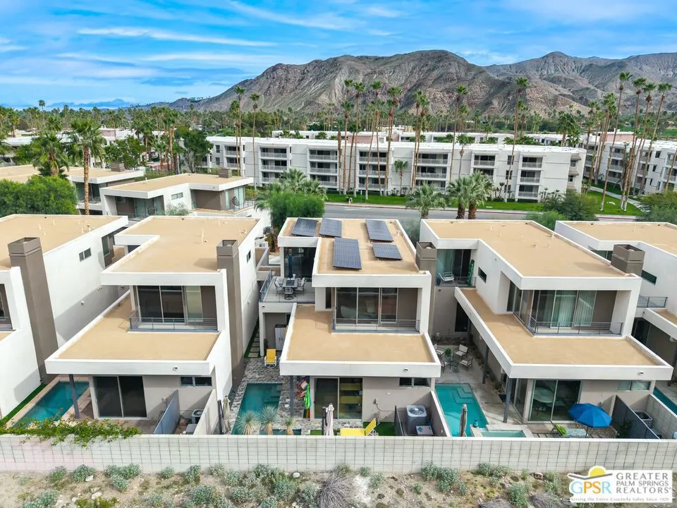 Experience desert contemporary living at "The 2801," an enclave of 16 fee simple homes in sought-after South Palm Springs. Step into light-filled interiors where 10-foot ceilings and large glass doors frame dramatic mountain views from every angle. The open-concept living, dining, and kitchen areas create an entertainer's dream, flowing effortlessly to a sparkling backyard oasis with private pool and spa...perfect for starlit evenings against the San Jacinto backdrop. This thoughtfully designed townhome lives like a single-family home with no shared walls, but with the low-maintenance convenience of a condo, and features two generous bedroom suites plus a versatile office/flex space. With abundant smart home features, the property includes owned solar (grandfathered NEM 2.0) and a Powerwall home battery. The HOA does not have rental restrictions (buyer must verify availability of short-term rental permit with the City of Palm Springs) and monthly dues include water and 2Gb fiber internet. Make this spectacular Palm Springs property your own and start living the desert dream today!