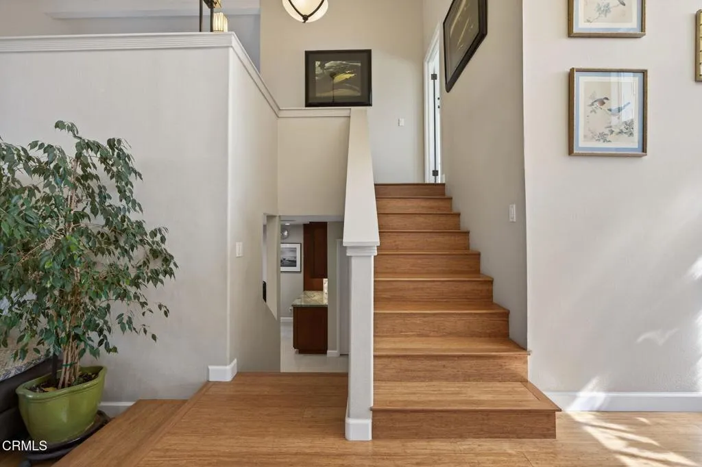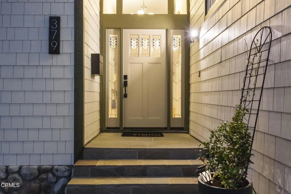 Once every few years an Ashwood Estate home, located in the desirable above-the-Ventura College area, becomes available; today is the day. Nestled below the foothills of Ventura, this home is like no other. The mid-level entryway greets you with gorgeous bamboo flooring. Solar tubes create a bright and cheerful living room and the slate rock fireplace invites all to sit and enjoy.The lower-level boasts a gourmet kitchen with solid maple custom cabinets and natural stone countertops. The Viking six-burner stove and oven make gourmet cooking a breeze. There is plenty of storage for kitchen appliances with a walk-in pantry as well as a separate walk-in food pantry.The upper-level master suite offers a library featuring lighted solid maple bookcases. The sliding glass doors off the master suite open to a private veranda that offers beautiful views of the Ventura foothills. The custom master closet is spectacular.The fully custom master bathroom with newer bamboo cabinets, stone flooring, recessed illuminated medicine cabinets, walk-in shower with rain-head and built-in seat, frameless glass door and enclosure, and stone pebble floor. One more master suite plus is the split-air heating and air conditioning, which is whisper quiet.The front and backyards are fully landscaped with the sustainable gardening touches that only a master gardener can provide. Entertain family and friends on the newer concrete patio. Sit under the vaulted wood-beam custom cover with lighting, or warm yourself in front of the wood burning custom fireplace that includes flagstone bench seating on both sides. Never buy citrus fruit again because the backyard has 15 citrus trees (orange, lemon, lime, grapefruit as well as avocado to name a few).There is also a 24-panel electric system with Tesla storage battery (100% owned). There is so much more to this move-in ready home...all this and parks and hiking trails just minutes away.