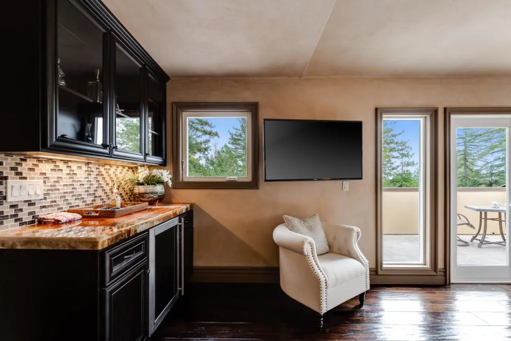 You wouldn't expect a setting like this just minutes from town. Gated privacy, peaceful, surrounded by redwoods, yet effortlessly connected to everything. It's that contrast that makes this home truly memorable. Originally intended as the contractors personal residence, the level of craftsmanship and quality is evident throughout. Venetian plaster walls, beautifully polished floors, and thoughtfully selected finishes create a sense of understated sophistication, the home feels elevated without ever feeling overdone. The layout unfolds across three levels, each opening to its own private deck facing the stunning backdrop of trees and mountains. Almost every bedroom features an ensuite, including two that function beautifully as primary suites, offering flexibility for a variety of living arrangements. The main living space strikes a perfect balance: soaring ceilings and an open-concept design that still feels warm and inviting. Wet bars on each level, an unexpected but incredibly functional detail, enhance the homes livability and ease of entertaining. 4 Fireplaces, an oversized garage, thoughtful design choices, and meticulous upkeep reflect the original vision behind the home, crafted with intention, and built to a higher standard.