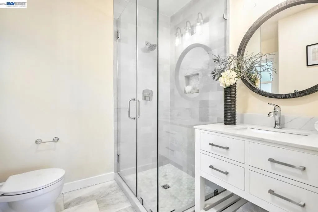 Beautifully remodeled 5 bedroom, 3 bathroom, 2741 sf home with attached two-car garage in the highly sought-after neighborhood of Upper Rockridge. Designer touches include Spanish inspired interior, inviting archways, refinished oak hardwood and new porcelain tile floors, Milgard windows, new paint, TOTO smart bidet, NEST thermostat and Google smart smoke/carbon monoxide alarms, energy saving LED lighting, new plumbing/electrical throughout and much more. Main floor boasts an elegant kitchen with brand new stainless steel Bosch appliances, large island and breakfast nook. Formal dining area leads into a bright and airy living room with high ceilings and wood burning fireplace. Top level features two spacious bedrooms and double-sink bathroom. Down the hall is a second primary bedroom with en suite bathroom. Lower levels include a beautiful main primary bedroom with a luxurious bathroom and walk-in closet; dedicated laundry area; and private fifth bedroom/office for secluded remote work. Large bonus/game room offers an ADU conversion potential for supplemental income or multi-generational living. Secluded backyard is easy-to-maintain and features a large deck. Close to award winning coveted schools, Montclair, BART and Claremont Country Club & Golf Course.