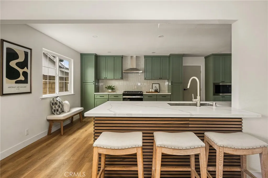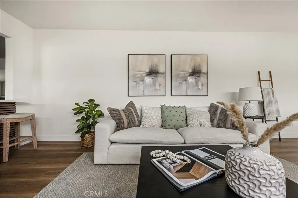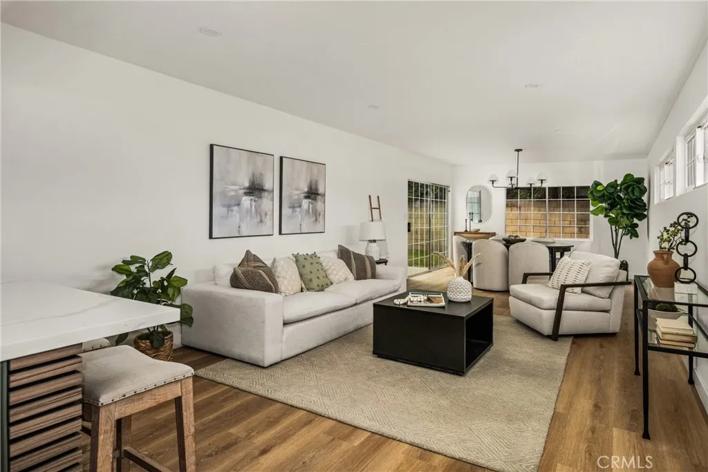 Welcome to this beautifully updated Cerritos home offering 4 bedrooms, 2 bathrooms, and TWO living rooms, perfectly set up for a beautiful formal living room and separate family room. Step inside to a spacious formal living room highlighted by soaring vaulted ceilings and an abundance of natural light. New flooring flows throughout the home, creating a fresh and cohesive feel. The expansive kitchen is a true centerpiece, featuring new cabinetry, stainless steel appliances, and a generous peninsula with bar seating—perfect for casual breakfasts or entertaining. The kitchen opens seamlessly to an additional family room with ample space for relaxing, TV viewing, and gatherings. Just beyond, the dining area provides room for a large dining table and features sliding doors that lead to the backyard, creating an ideal indoor-outdoor flow. Additional conveniences include a two-car garage with direct interior access and a washer and dryer located in the garage. Situated in one of Cerritos’ most desirable neighborhoods and within the highly regarded ABC Unified School District, this home offers comfort, style, and an exceptional location. A wonderful opportunity not to be missed. Schedule your personal showing today!