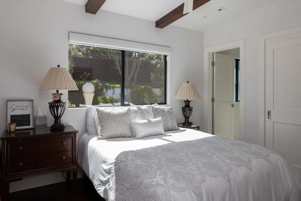 Perfectly positioned on the 8th hole of the Dunes Course at Monterey Peninsula Country Club, this down-to-the-studs renovation blends clean, modern design with warm, natural finishes. The home features three en suite bedrooms, radiant heated floors, solar power, and seamless indoor-outdoor living, all crafted with high-end materials throughout. The kitchen is both elevated and functional, showcasing Taj Mahal quartzite countertops, a large center island, custom cabinetry, designer lighting, and a professional range. It opens effortlessly to the main living spaces, creating an ideal layout for everyday living and entertaining. Rich wood tones paired with light, refined finishes give the home a timeless, coastal-modern feel. Spa-like bathrooms offer oversized walk-in showers, floating vanities, and backlit mirrors, bringing a true retreat-like experience to each space. Exposed beam ceilings and wide-plank flooring add warmth and architectural interest throughout. A welcoming private front courtyard sets the tone on arrival, while the backyard is designed for both relaxation and play, featuring a small putting green and outdoor fire pit, all set against the peaceful backdrop of the fairway. This is a rare opportunity in one of Pebble Beach's most sought-after golf course locations.