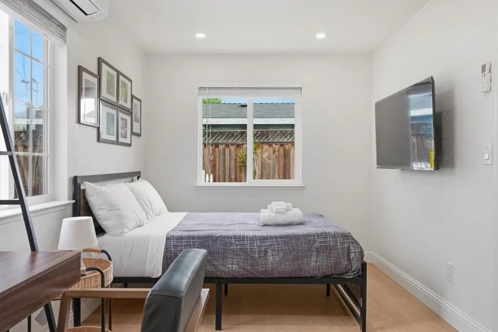 Welcome to this charming single-family home with 4 beds and 2 baths (1,167 sqft), plus an ADU with 1 bed and 1 bath (362 sqft). The home features a front yard with good privacy. Inside, a spacious living room with skylights and recessed lighting flows into the updated gourmet kitchen with quartz countertops and backsplash, stainless steel appliances, and ample cabinetry, connected to the dining area with a stylish ceiling light. A door opens to the backyard for indoor-outdoor living. The hallway includes sun tunnels. The primary suite is at the front with a bay window and en-suite bath with stall shower. A second bedroom also has a front-facing bay window, plus two additional bedrooms. Fresh interior and exterior paint throughout. The hallway bathroom offers a shower over tub. The 2025-built ADU in the backyard has its own entrance, a modern kitchen with quartz countertops and stainless steel appliances, a bedroom with wall unit AC, and an updated bathroom with stall shower and laundry, offering great rental income potential. Convenient location with easy access to Hwy 101, 237, Lawrence, and San Tomas Expy, and a short commute to major tech companies. Do not miss this great opportunity!