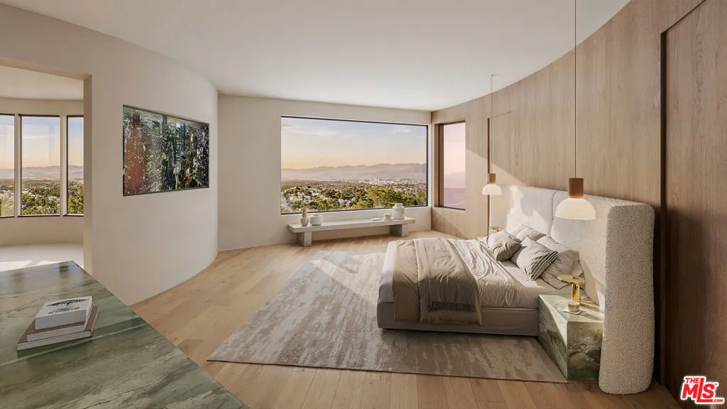 HOUSE FULLY COMPLETE JULY 2026! Be apart of the finishing process to this masterpiece. Perched above the valley with sweeping canyon views, this striking architectural residence blends modern design with elevated California living. Spanning approximately 6,330 square feet, the home offers 4 spacious bedrooms and 4.5 bathrooms, thoughtfully designed with both functionality and style in mind. Clean lines, warm natural materials, and expansive walls of glass define the home's distinctive aesthetic, creating a seamless indoor-outdoor experience and filling each space with natural light. The open-concept living areas are complemented by a private home office, a fully equipped gym, and a dedicated podcast/content studio ideal for today's work-from-home and creator lifestyle. The outdoor spaces are equally impressive, featuring a resort-style pool, BBQ area, and multiple vantage points to take in the unobstructed valley and canyon views perfect for both entertaining and quiet retreat. A rare offering that combines architectural significance, high-end finishes, and exceptional amenities in one of Los Angeles' most desirable submarkets.