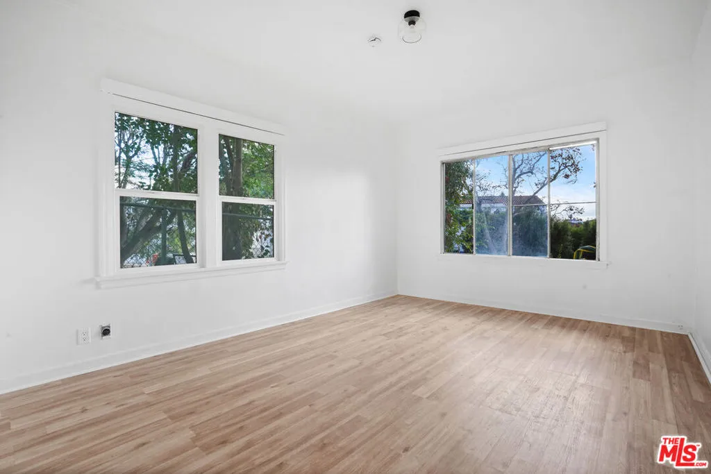 1091 S. Mansfield is a great opportunity to live in a recently remodeled 2 bedroom + 1 bath located in a beautiful- peaceful duplex that is set back from the street. Home was updated in 2023. Many great original details throughout, plus newer laminate warm oak wood floors throughout and crown molding, accenting the spacious living and dining room with tree top views were you can catch the LA sunsets! The kitchen has newer stove, microwave, refrigerator with newer stackable washer/ dryer in laundry area. Quiet neighborhood and centrally located, this is an ideal location close to transportation, Target, Sprouts, and restaurants including Museum Row, The Grove, and the Metro Purple Line. Street parking only. **Furnished photos are virtually staged** 48 hr. Showing Notice Required ** Mini Split AC to be installed** Available May 10th. **