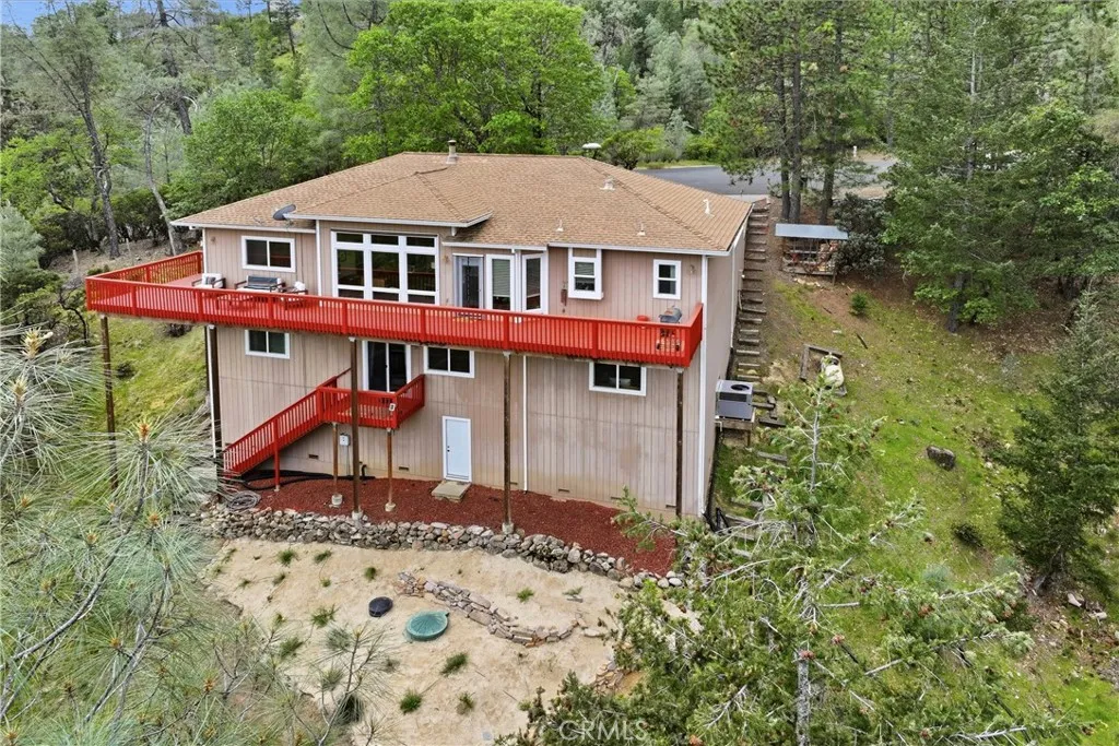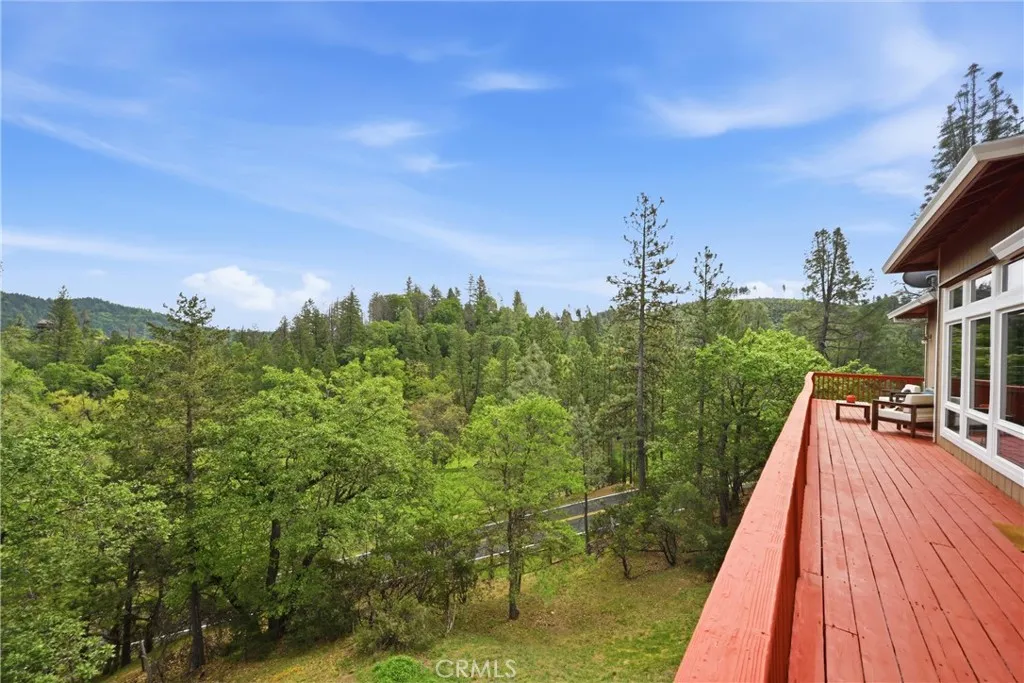 Perched above the lush fairways of Adams Springs Golf Course, this beautifully maintained 4-bedroom +Bonus room, 3-bath home offers breathtaking views of the surrounding forest and majestic Mt. Hannah from nearly every window. Located on a quiet cul-de-sac with only two homes, this property provides an exceptional sense of privacy, serenity, and natural beauty. Spanning 2,306 sq ft, the home features a thoughtful layout designed for both comfortable living and entertaining. The main level welcomes you with a bright living room showcasing hardwood floors, vaulted ceilings, picture windows, and a cozy wood stove for chilly mountain evenings. The kitchen is well-appointed with maple cabinetry, stainless steel appliances, granite countertops, two pantries, and a separate laundry room. Just off the dining room and primary suite, step onto the expansive redwood deck that spans the entire back of the home, perfect for relaxing, entertaining, and soaking in the peaceful scenery. The primary suite features a tray ceiling, an ensuite bath with dual vanities and a large soaking tub with tile surround, and private access to the deck. Two additional bedrooms and a full bathroom are also located on the main level. Downstairs offers wonderful flexibility with a spacious family room, guest suite, full bathroom, and a private office, creating an ideal setup for multi-generational living, guest accommodations, a home office, or creative studio space. The outdoor spaces are equally inviting. The 0.66-acre lot features low-maintenance native landscaping and raised garden beds on drip irrigation, along with a fenced dog run and bocce ball court for outdoor enjoyment. A wide driveway with level access and ample parking adds convenience, while the property backs to nature and open greenspace, enhancing the peaceful setting. First time on the market, this special property offers privacy, beautiful surroundings, and flexible living space, an exceptional opportunity to enjoy the best of mountain living.