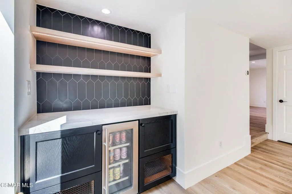 Welcome to 6823 Castle Peak Drive, a beautifully updated 3 bedroom, 3 bathroom home in Castle Peak Estates, offering 2,047 square feet of modern, move-in ready living.The interior has been thoughtfully renovated throughout. New luxury vinyl plank flooring runs the entire home. Newer dual-paned windows with custom window coverings from The Shade Store bring in natural light while maintaining privacy. The recently renovated chef's kitchen features custom cabinetry and a full suite of Thermador appliances. A stylish dry bar with beverage fridge and custom shelving is perfect for entertaining.Both upstairs bathrooms have been updated with dual vanities, and a renovated powder room serves guests on the main level. Designer lighting on smart switches and a Nest thermostat offer app-based control. The garage is equipped with two 220V outlets, providing dedicated charging capability for two electric vehicles.Step outside to a spacious backyard surrounded by mature trees and greenery, with direct access to the hiking trails of Ahmanson Ranch. A finished detached structure provides flexibility as a home office or flex space.Located within the highly regarded Las Virgenes Unified School District. Available May 1.
