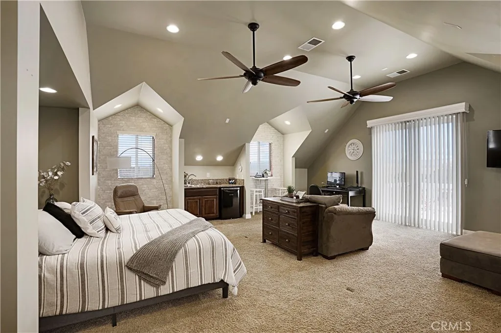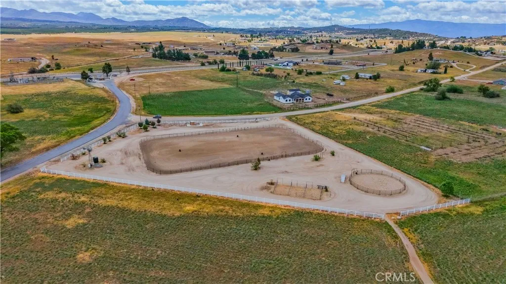 Stunning custom home in the gated community of Lake Riverside Estates featuring TWO primary suites and breathtaking views of Lake Riverside and Cahuilla Mountain, all set on over 2.5 acres of usable land. Designed with both comfort and flexibility in mind, this expansive home offers a bright and open floor plan with high ceilings, recessed lighting, tile flooring, new hardwood flooring on stairs to upper level and new main level AC with also including ceiling fans throughout. The chef’s kitchen is a true centerpiece, showcasing granite countertops, an apron sink, center island, breakfast bar, stainless steel appliances, and a custom range hood, all framed by soaring vaulted ceilings and large windows that fill the space with natural light. The main level features a spacious primary suite with a sitting area, walk-in closet, crown molding and a well-appointed bathroom with a jetted tub and walk-in shower, along with two additional bedrooms conveniently located on the main floor. The living room offers a cozy fireplace and French doors that enhance the indoor-outdoor flow, while a formal dining room provides the perfect setting for gatherings. Upstairs, a second private primary suite offers incredible versatility with its own bathroom, dual closets, coffee bar, a mini refrigerator, plus its own AC, heating system, and tankless water heater, making it ideal as a guest retreat, multigenerational living area, game room, or home office. Enjoy peaceful mornings or evening sunsets from the private balcony overlooking the surrounding landscape, gorgeous mountain views and a lake view! The property is fully equipped with newly installed automatic gates with remotes, fully fenced, a large concrete parking pad, offering ample space for RVs, boats, trailers, and more, along with an oversized 3-car garage and additional storage room. There is also a co-op with the electricity for a discounted rate. Located in the highly desirable, equestrian-friendly community of Lake Riverside Estates, residents enjoy access to a private lake, pool, clubhouse, airstrip, and riding trails, all while embracing the privacy, space, and natural beauty that define this exceptional property.