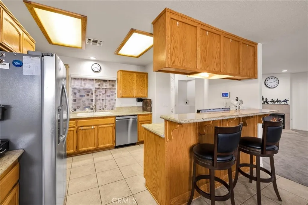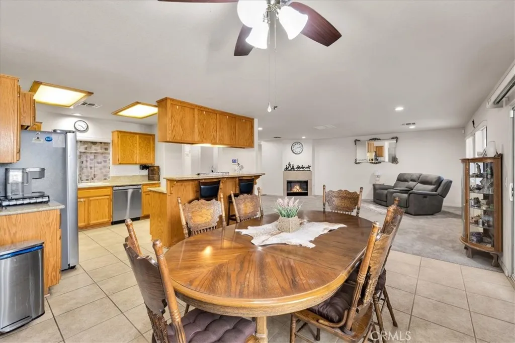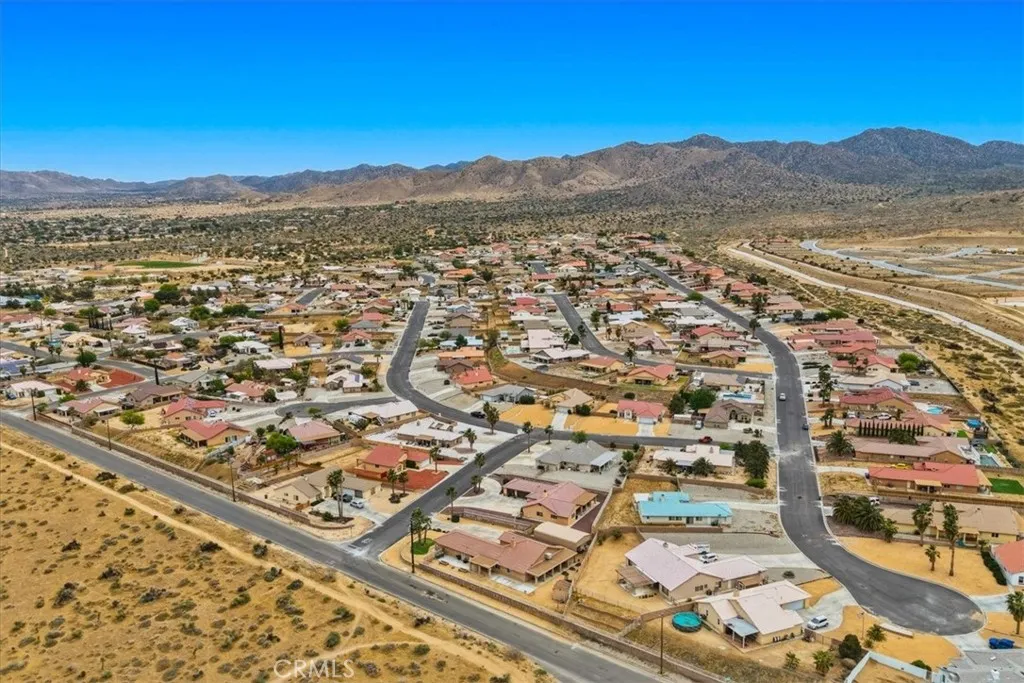 Spacious 4 bedroom, 3 bathroom single-story home positioned on a corner lot with wide open desert and mountain views. The layout offers an open living and dining area centered around a fireplace, with large windows bringing in natural light and views. Kitchen features granite counters, oak cabinetry, breakfast bar seating, and stainless steel appliances, with an open floor plan. The covered patio spans the length of the home, ideal for relaxing or entertaining. Low maintenance landscaping with desert plantings keeps upkeep simple. Nice spacious fenced yard. Additional highlights include a 2-car attached garage, extended driveway with ample parking, and a covered RV parking structure with hookups. Property also features solar at $126 month. Conveniently located near schools, shopping, and local amenities with easy access to surrounding desert recreation and hiking areas.