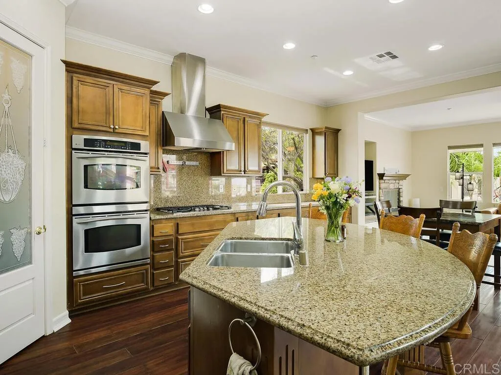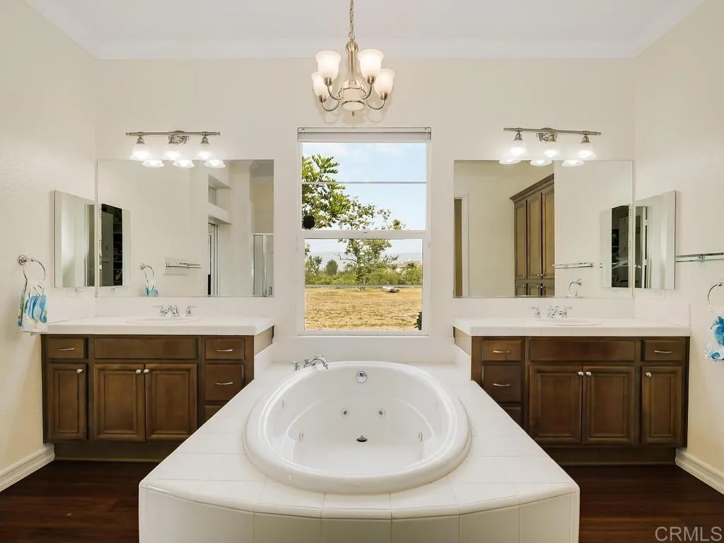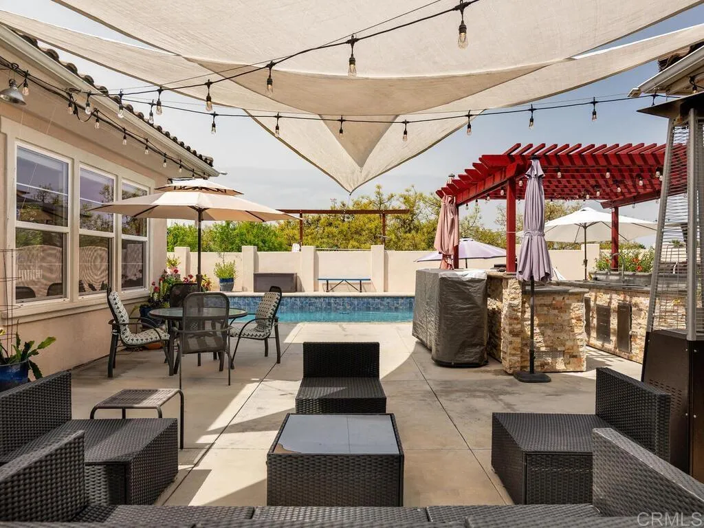 Located in the prestigious gated community of Valley View Ranch, this exceptional privately gated 4.97-acre estate offers rare seclusion, privacy, and resort-style living. The approximately 3,460 sq ft main residence features 4 bedrooms, 3.5 baths, a dedicated office, and a thoughtfully designed layout with a private primary suite overlooking the pool, while the three secondary bedrooms are set apart with their own separate bonus/flex space for added privacy and versatility. At the heart of the home, an open-concept kitchen, additional dining area, and large family room create the perfect space for comfortable everyday living, while a separate living room and formal dining room offer an elegant setting for special occasions or an additional place to relax and gather. An approximately 500 sq ft casita with full bath provides even more flexibility for guests, multigenerational living, or a private retreat—for a total of approximately 3,960 sq ft of living space. Designed for both relaxation and entertaining, the property showcases a new pool and spa tucked within a private walled courtyard, complemented by an outdoor kitchen, multiple outdoor courtyards, and expansive usable outdoor space ideal for entertaining, recreation, or simply enjoying the peaceful setting. Additional highlights include owned solar, RV hookups, and approximately 25 producing avocado trees and a variety of mature fruit and nut trees including blood orange, lemon, apple, lime, pomegranate, macadamia, pear, guava, kumquat, tangerine, orange, and nectarine”. With both gated community access and a private gated entry, this rare offering combines comfort, versatility, and exceptional estate living in one of Valley Center’s most desirable gated communities.