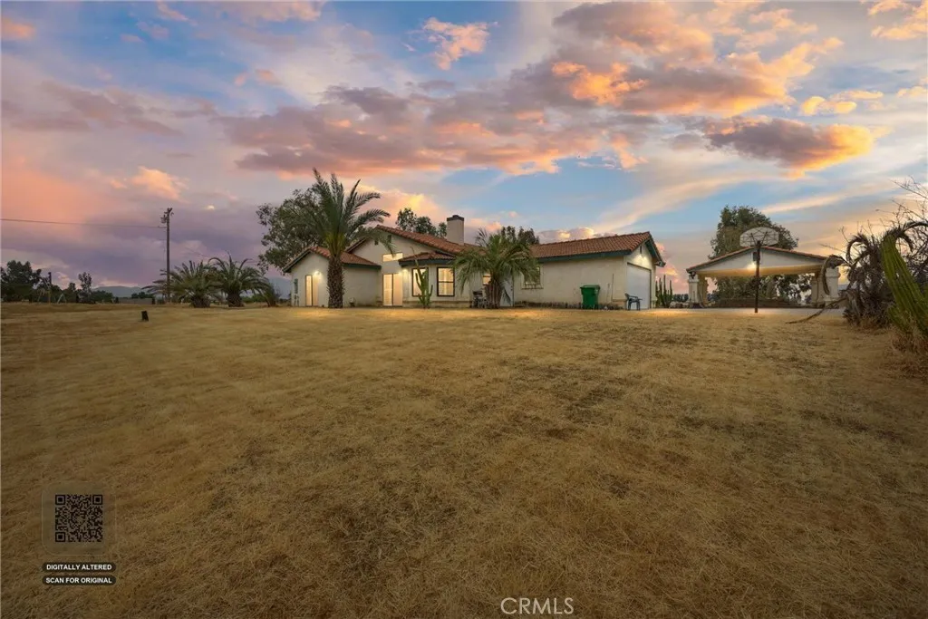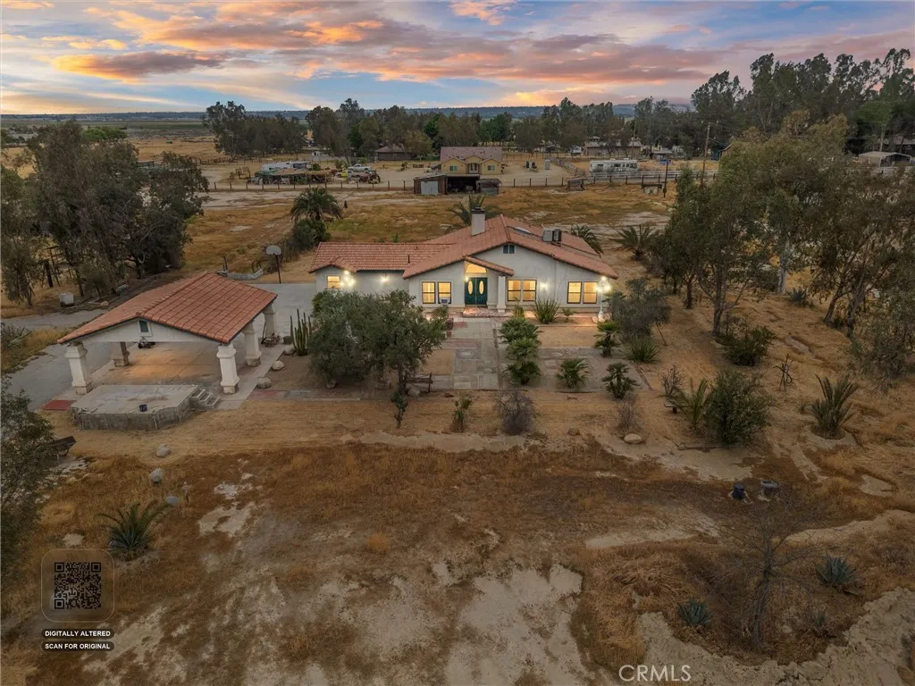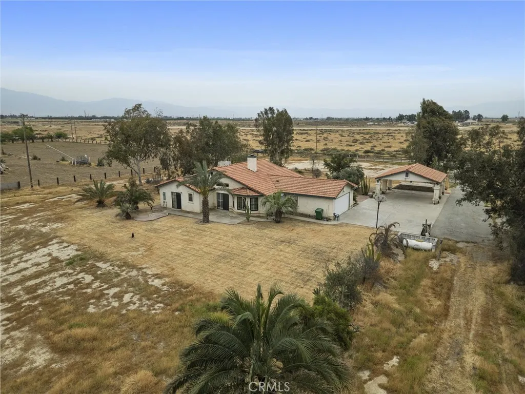 Welcome to this 4B/2B home set on an incredible 5.18-acre RS-zoned lot. With over five acres of land, this property truly stands out presenting a unique chance to own and utilize acreage of this size with endless potential! Step inside to find a double-sided fireplace that creates a natural connection between the dining and living areas, while plantation shutters throughout the main living spaces and kitchen add both style and functionality. Tile flooring enhances durability and ease of maintenance. With 5.18 acres of inviting Hacienda charm, this property presents an exceptional opportunity to develop a premier horse property—complete with space for a barn, riding arena, tack & feed areas, and open turnouts—while also allowing room for a pool! The home also features a covered outdoor structure with electrical, perfect for outdoor entertaining day or night. With space to grow, build, and create your vision, this is the kind of property that turns possibilities into reality!