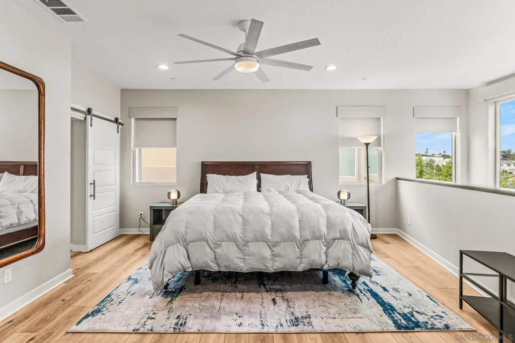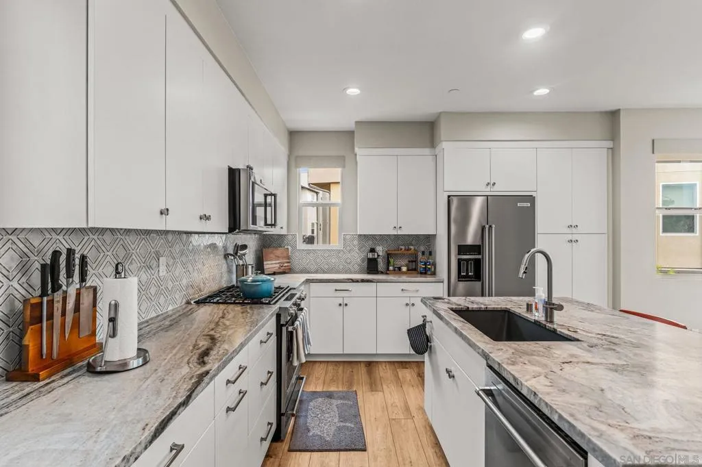 Built in 2024, this tri-level townhome offers modern design and exceptional comfort. Features include an attached 2-car garage, open floorplan, and a beautifully appointed kitchen with a large island—perfect for entertaining. The spacious primary suite provides a relaxing retreat, enhanced with custom California Closets for optimal organization. Additional upgrades include owned solar and a whole-house water filtration system, adding efficiency and everyday convenience. The living room balcony creates a seamless indoor-outdoor feel. Located in the desirable 3Roots community, residents enjoy resort-style amenities including a pool, parks, and more. Prime location with easy access to Sorrento Valley’s tech hub, UCSD, and nearby coastal areas. Move-in ready and impeccably maintained—this home truly stands out in the neighborhood!